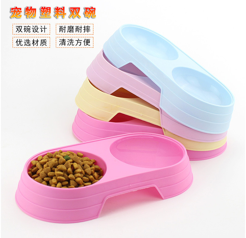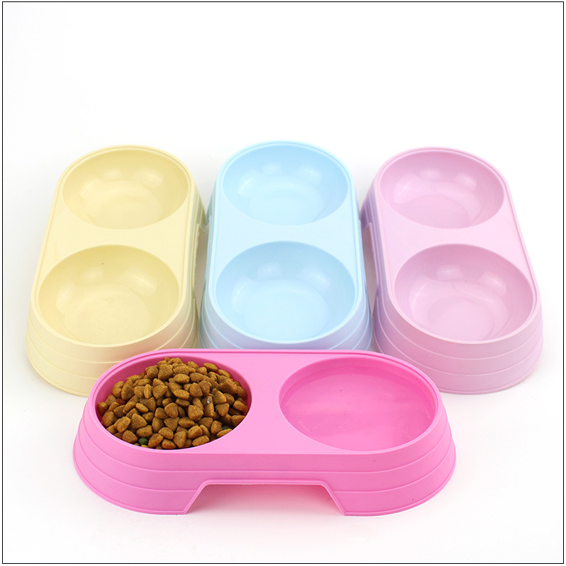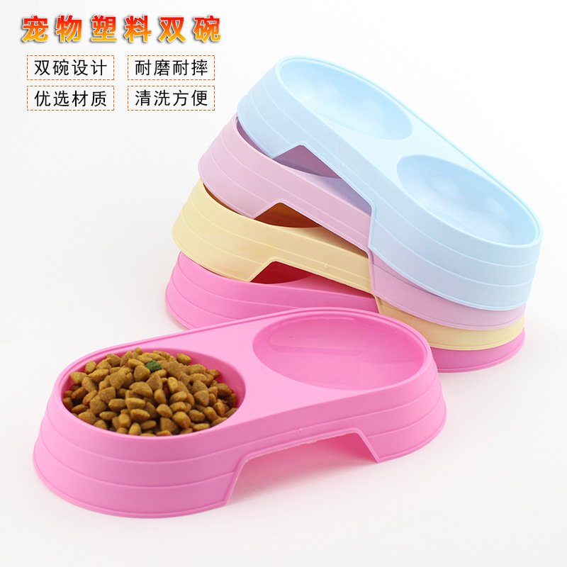 경제적 인 플라스틱 애완 동물 더블 그릇 고양이 그릇 개 먹이 분지 마시는 그릇 타원형 개 그릇 도매 애완 동물 그릇 용품