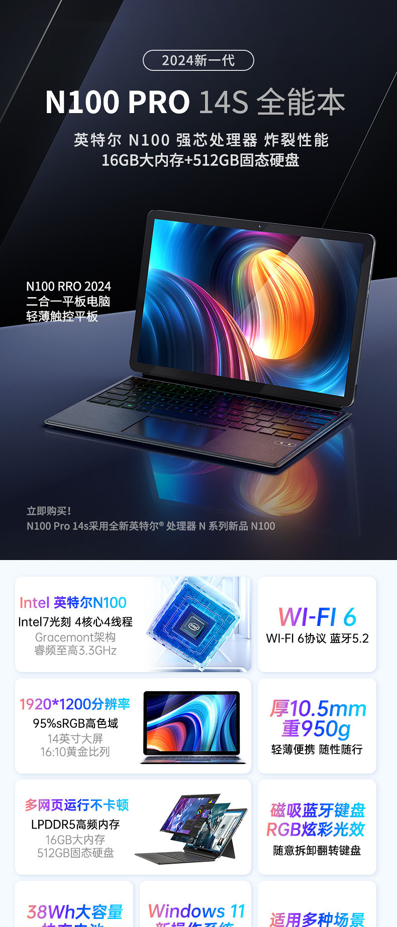 새로운 2-in -1 14 인치 N100 창 11 태블릿 10 손가락 터치 컴퓨터 비즈니스 사무실 디자인스토어 가기
