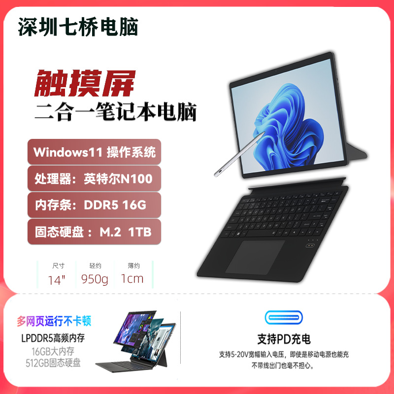 새로운 2-in -1 14 인치 N100 창 11 태블릿 10 손가락 터치 컴퓨터 비즈니스 사무실 디자인