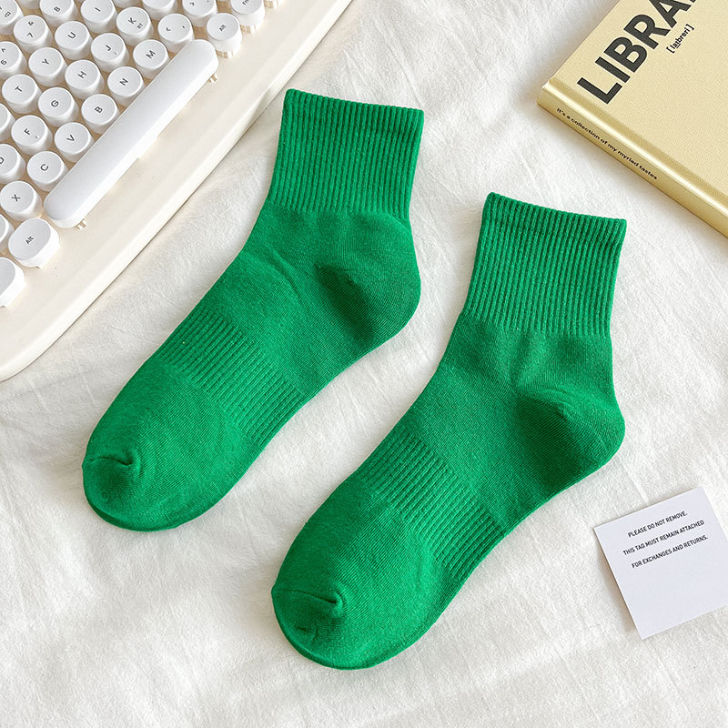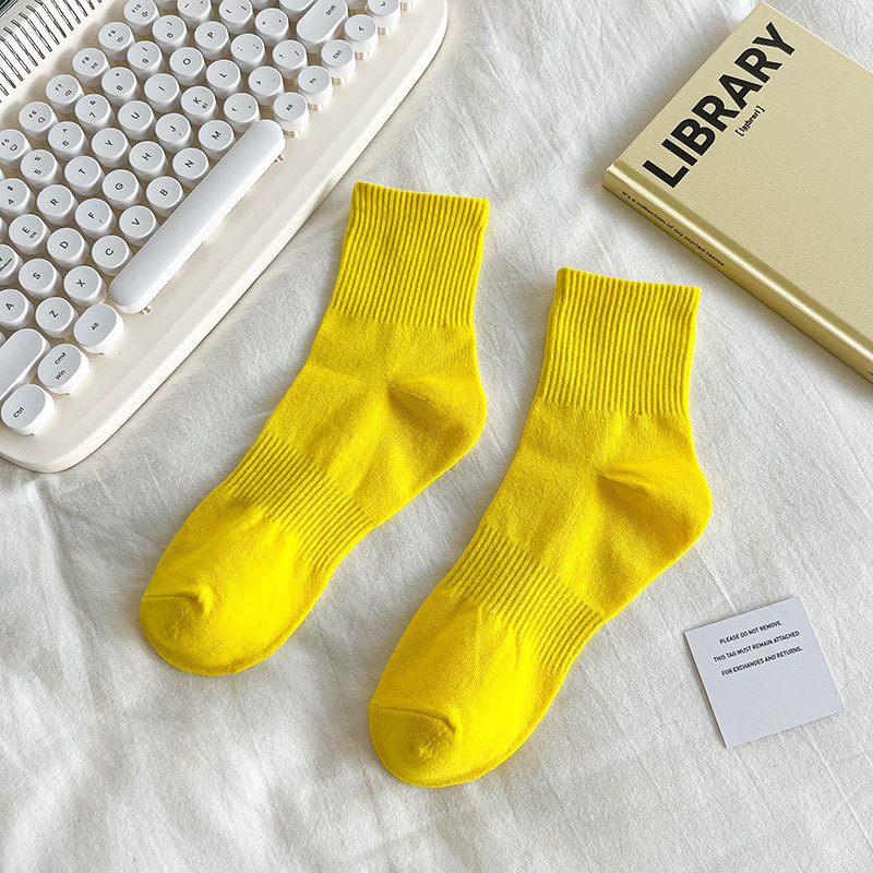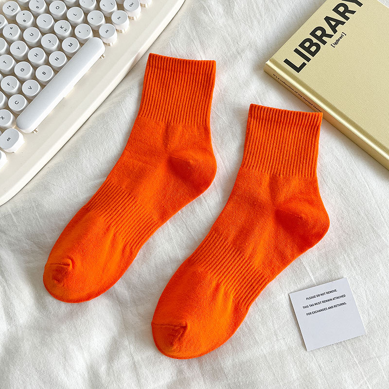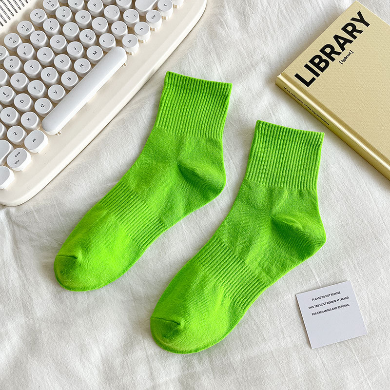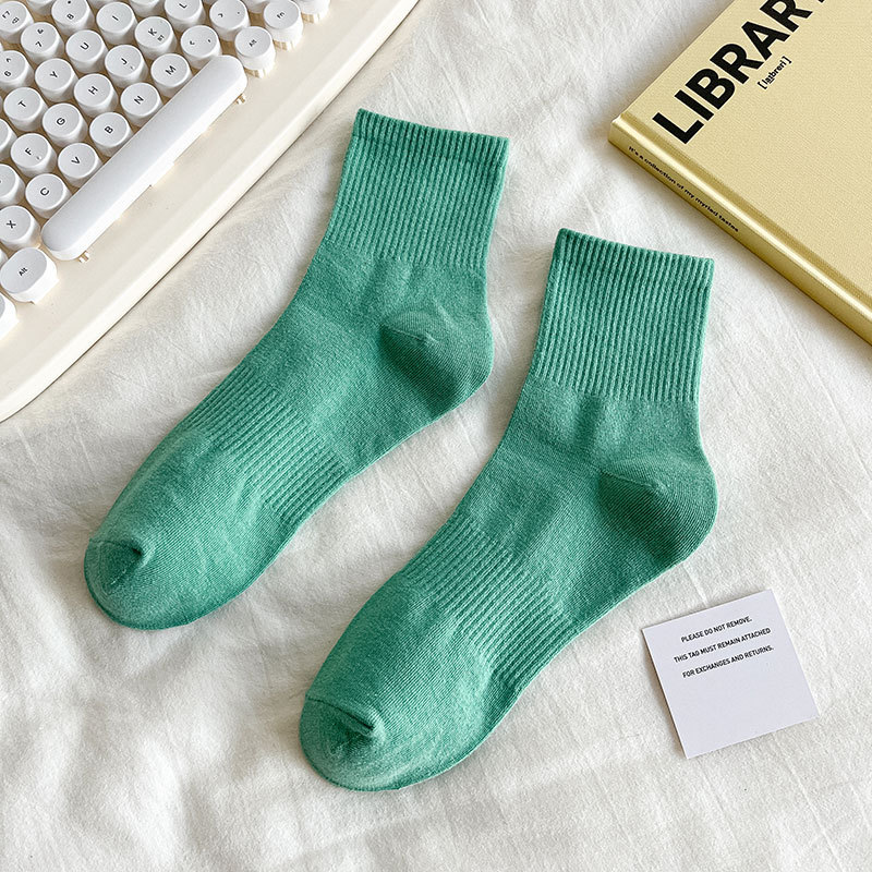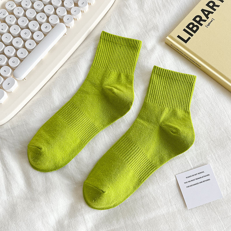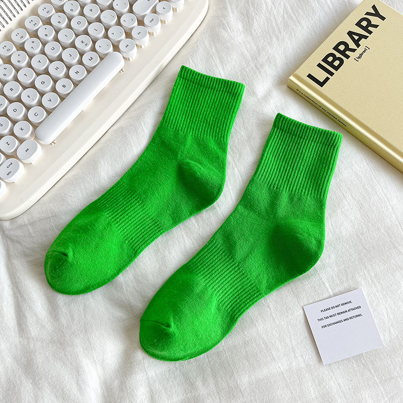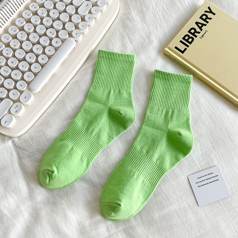화려한 양말 여성의 봄과 여름 얇은 짧은 튜브 솔리드 컬러 올 매치 코튼 솔리드 컬러 한국식 사탕 컬러 미드 튜브 양말