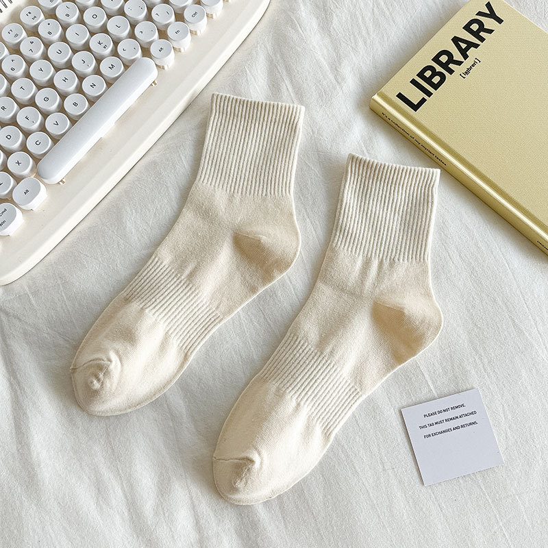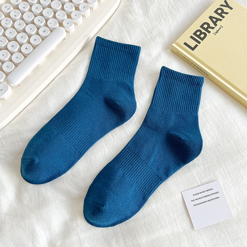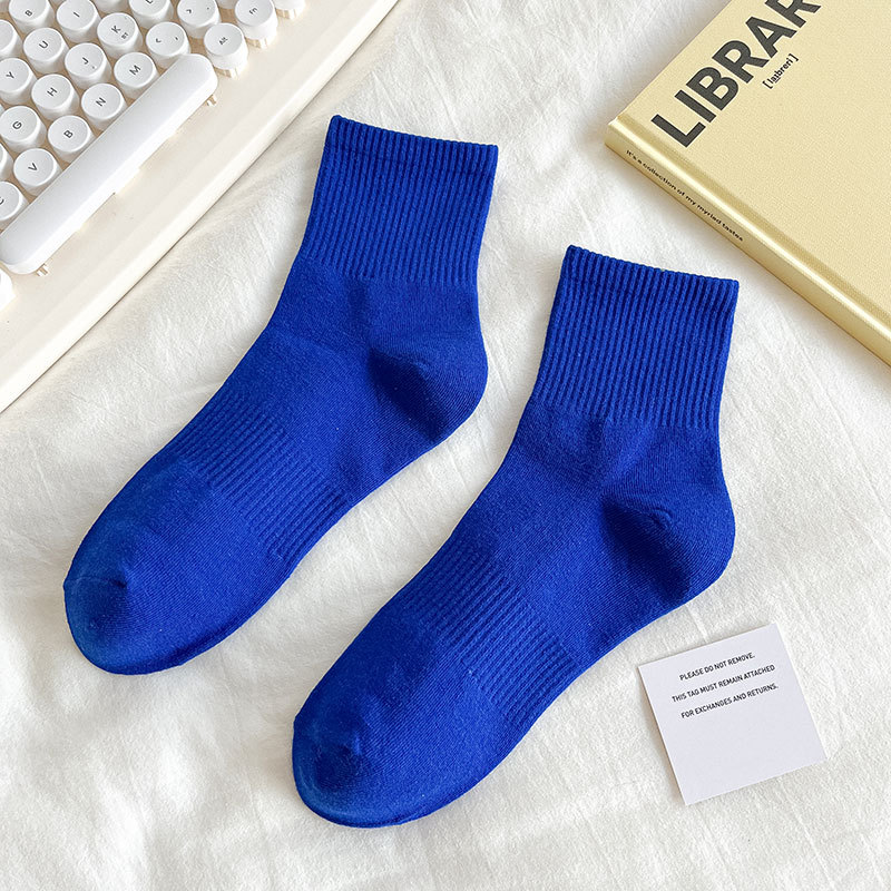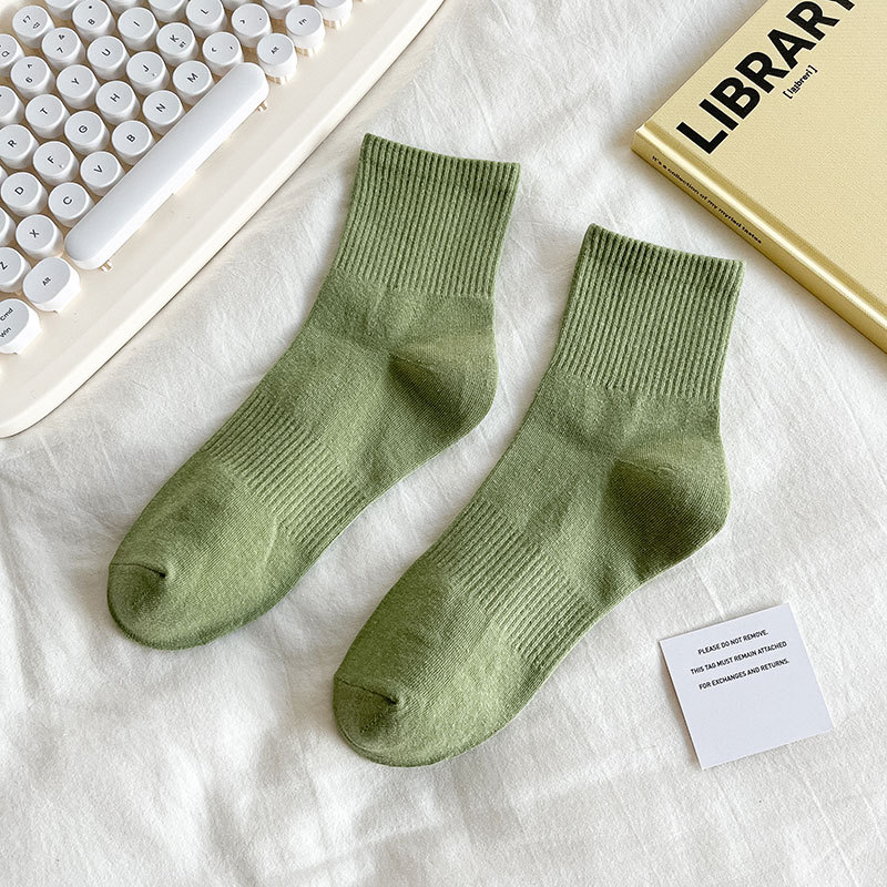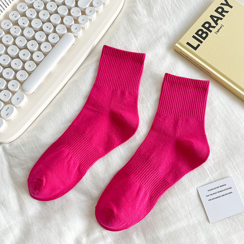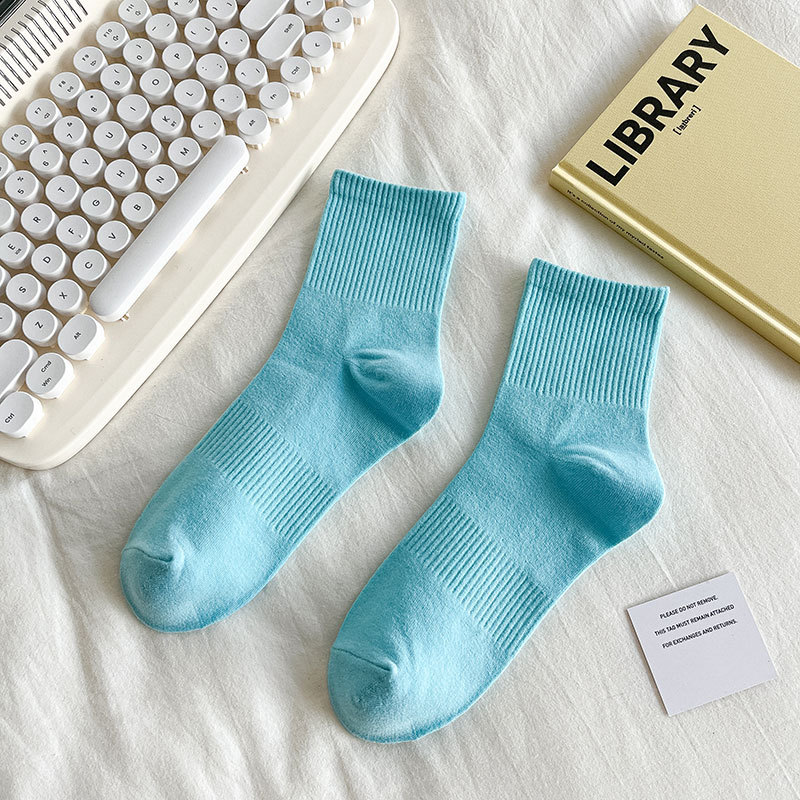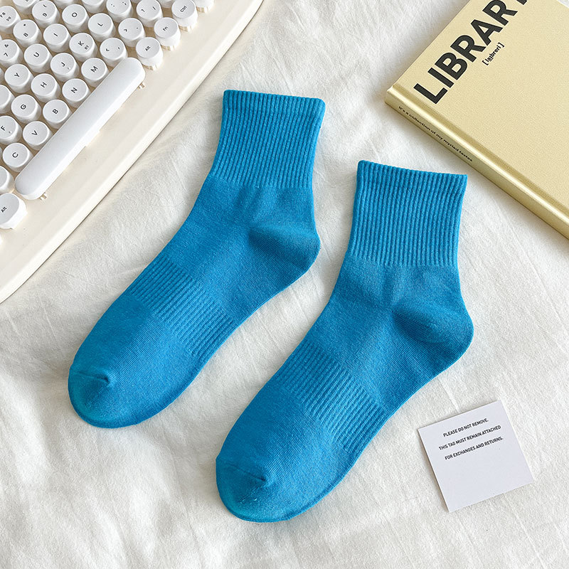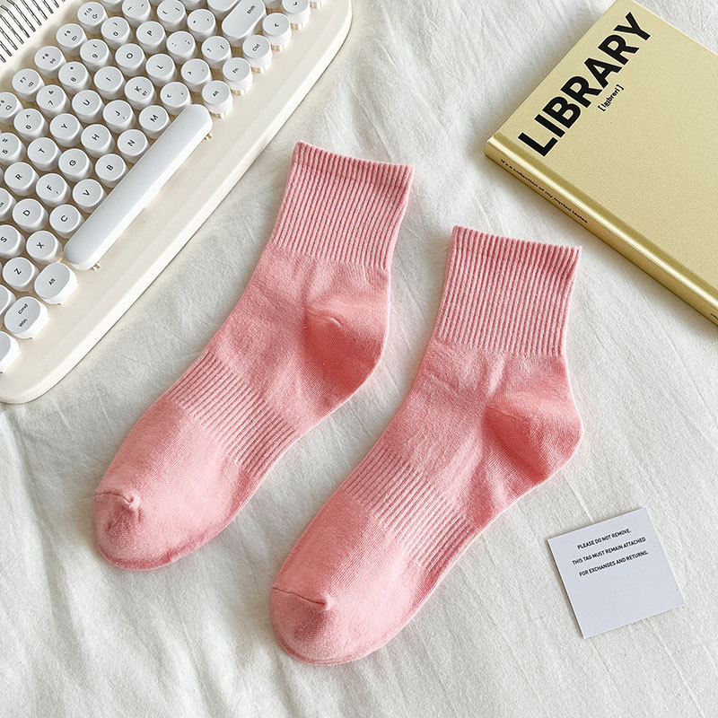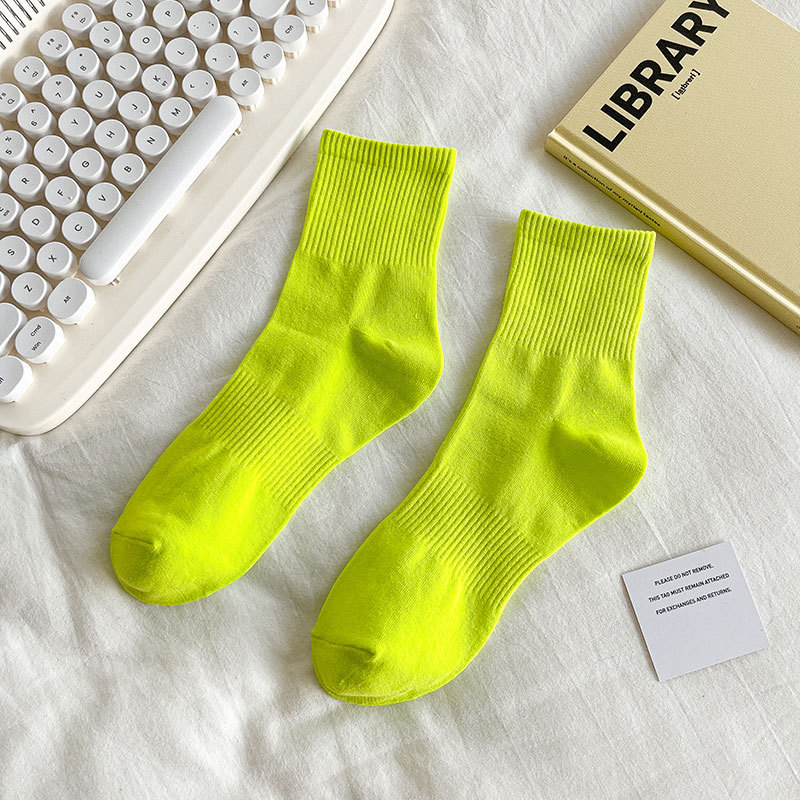 화려한 양말 여성의 봄과 여름 얇은 짧은 튜브 솔리드 컬러 올 매치 코튼 솔리드 컬러 한국식 사탕 컬러 미드 튜브 양말