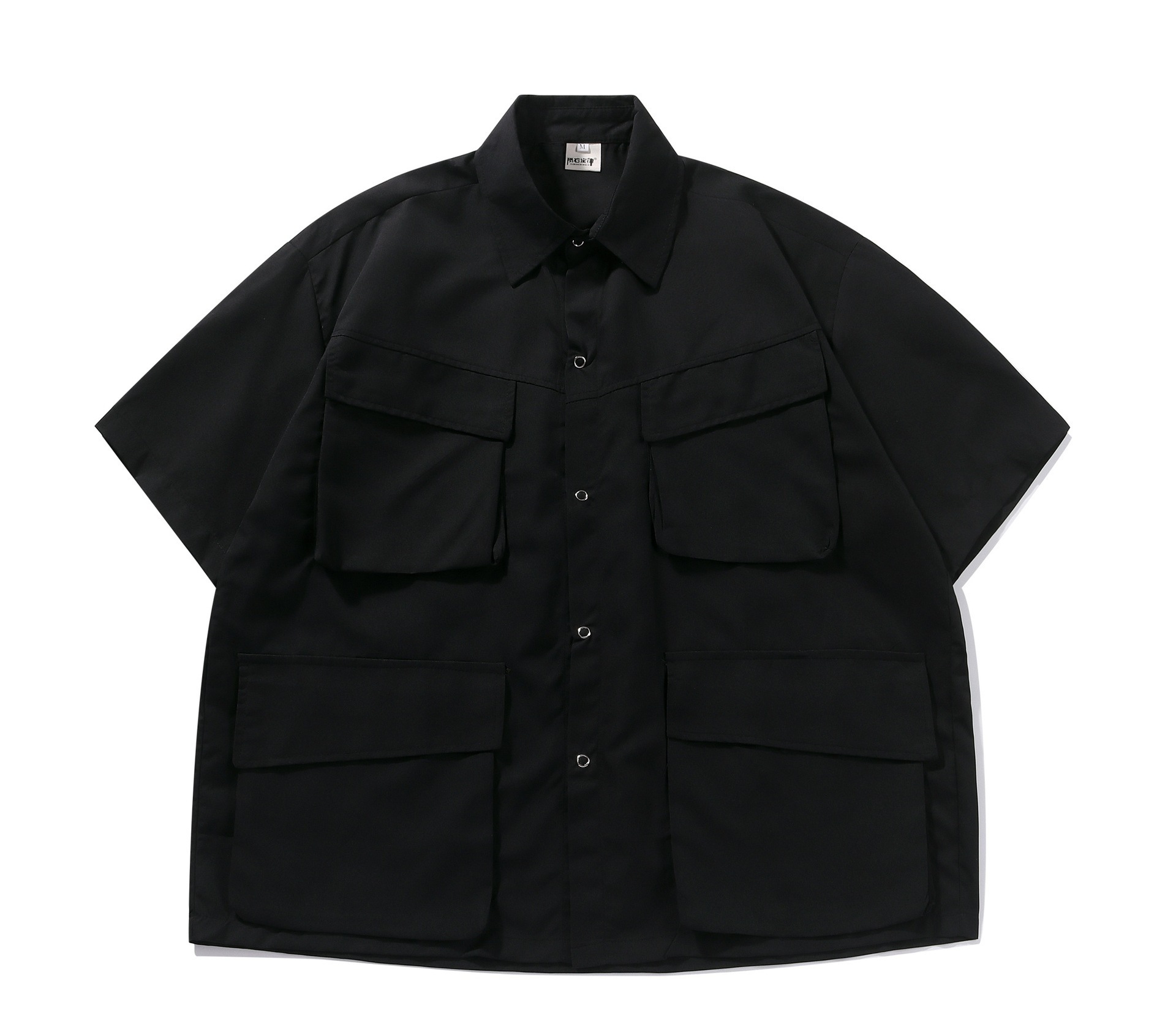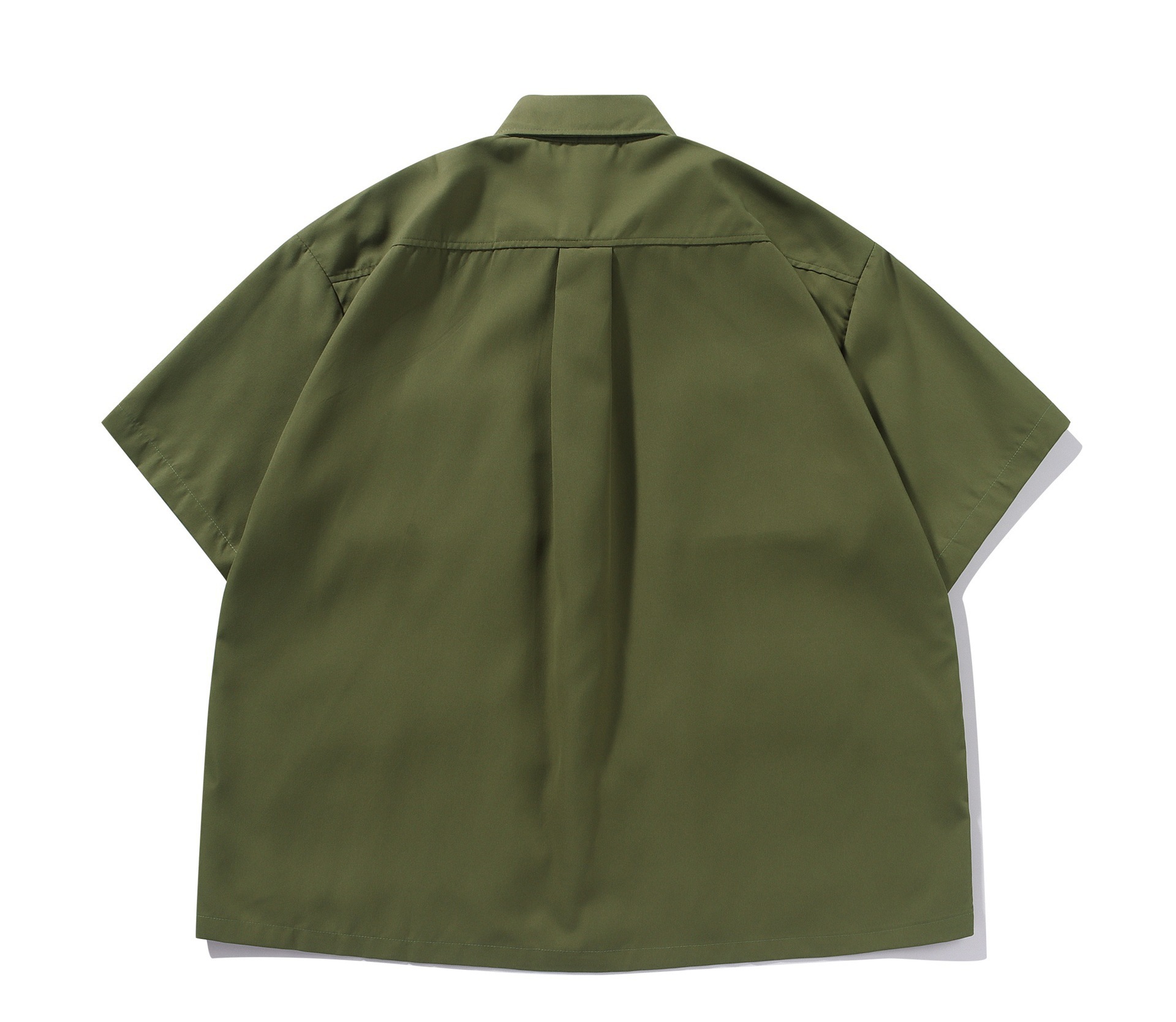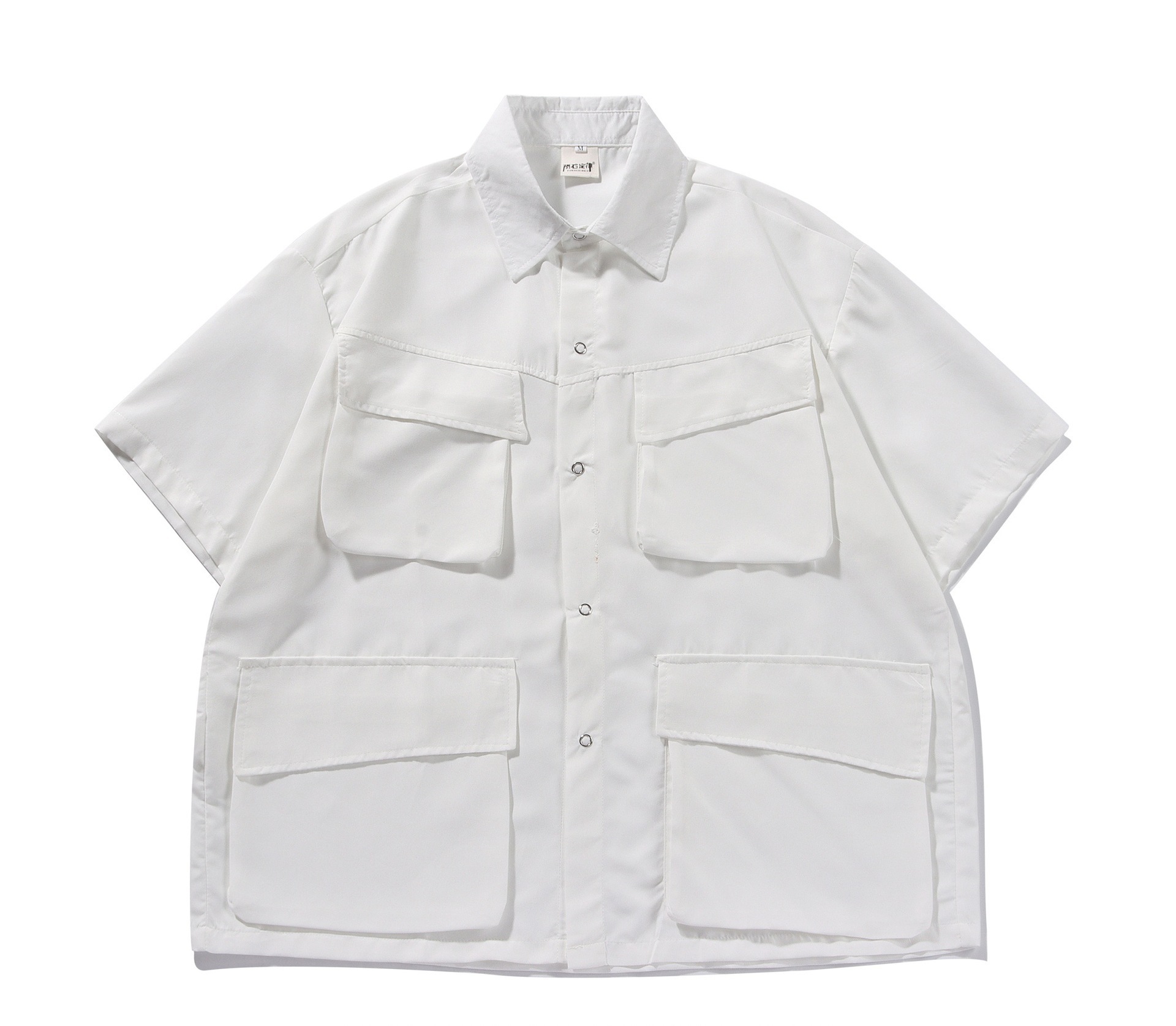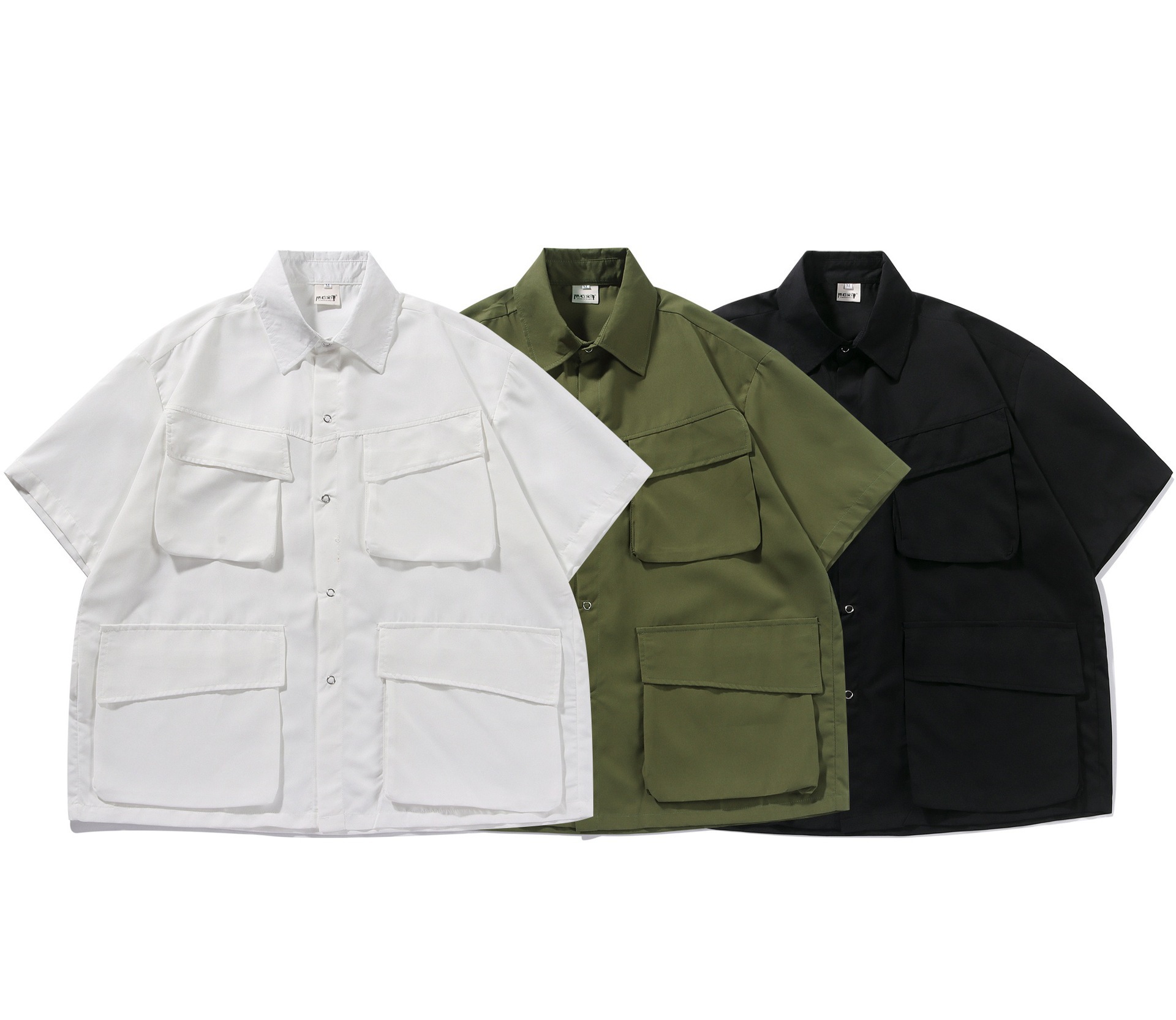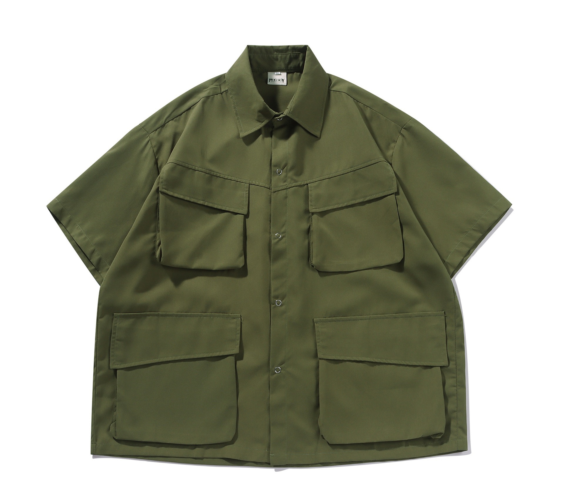 일본 도시 소년 원래 반팔 셔츠 남자 여름 단색 느슨한 플러스 사이즈 멀티 포켓 작업복 반팔 셔츠스토어 가기