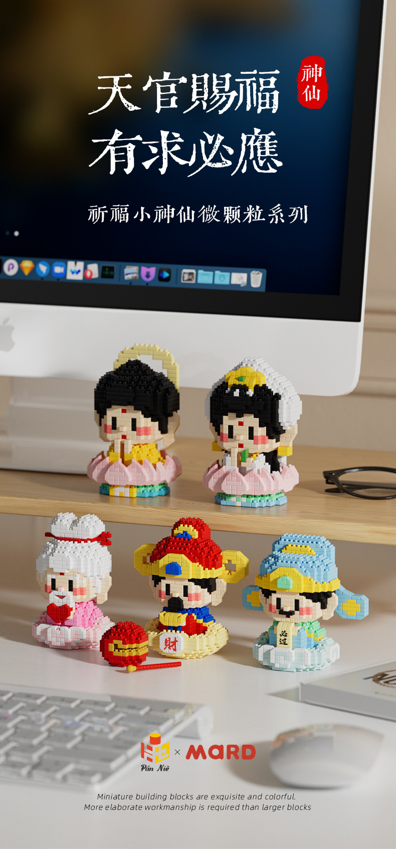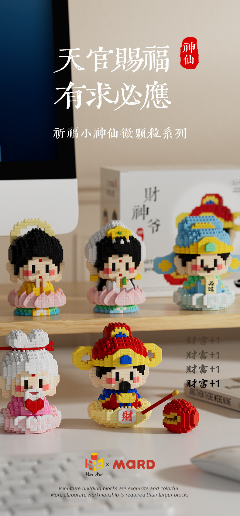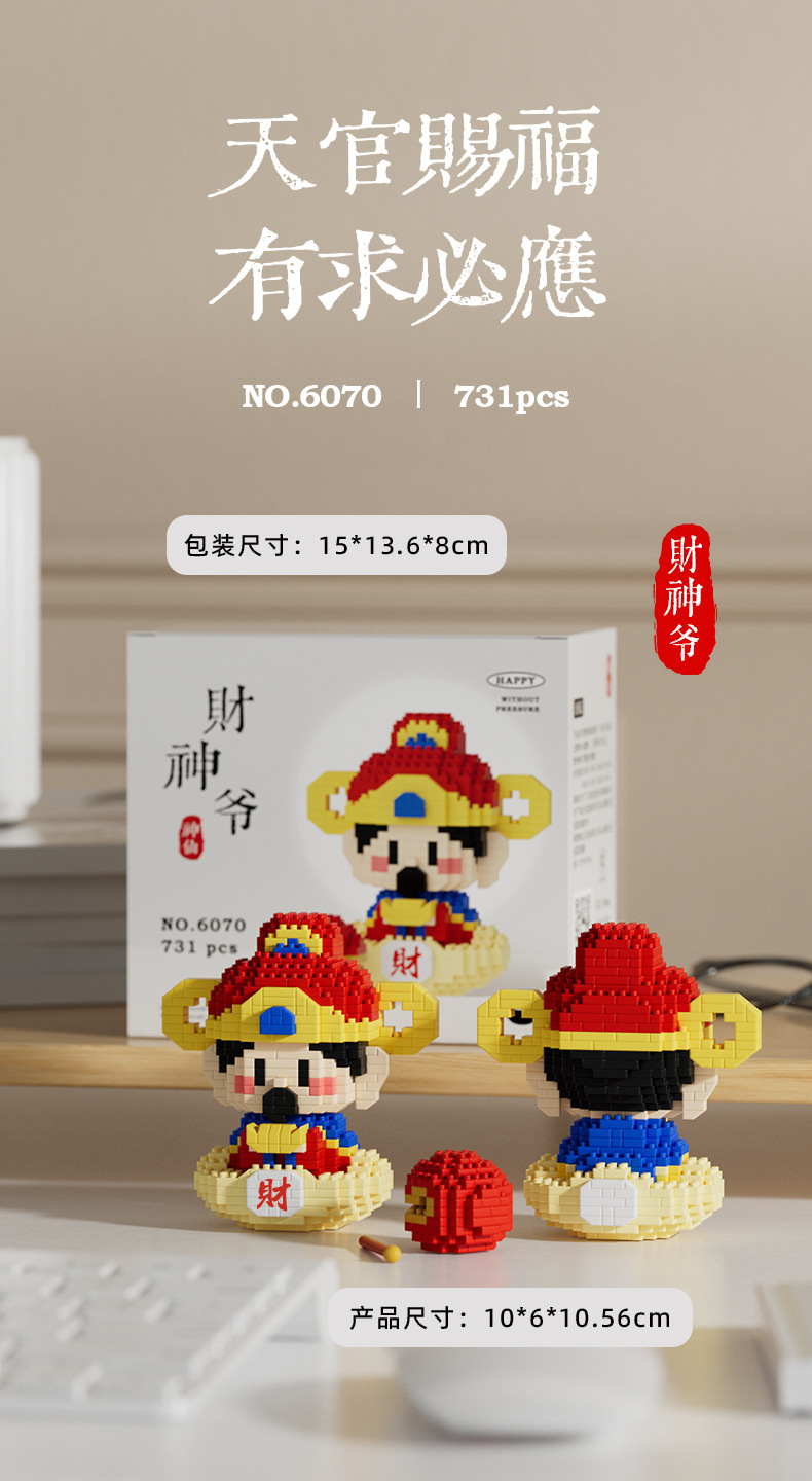 레고 마이크로 입자 빌딩 블록 부자의 작은 불멸의 신 Wenqu 새해 창조적 인 장식품 어린이 교육 장난감 선물스토어 가기
