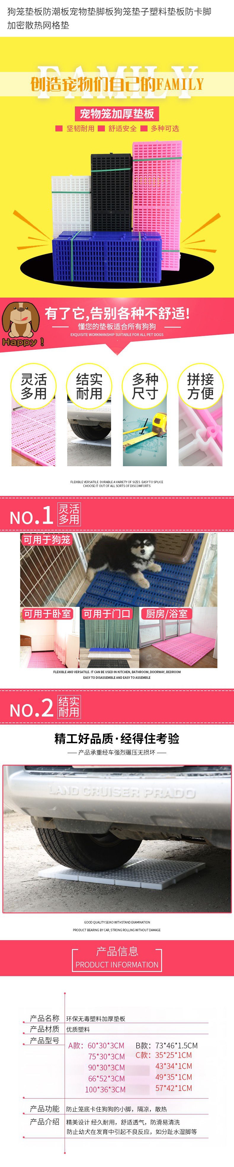 방습 보드 플라스틱 패드 개 케이지 애완 동물 패드 개 케이지 패드 안티 카드 발 암호화 방열 그리드 패드 잘 생긴