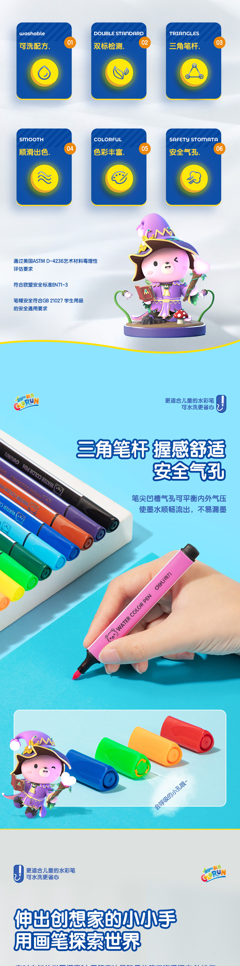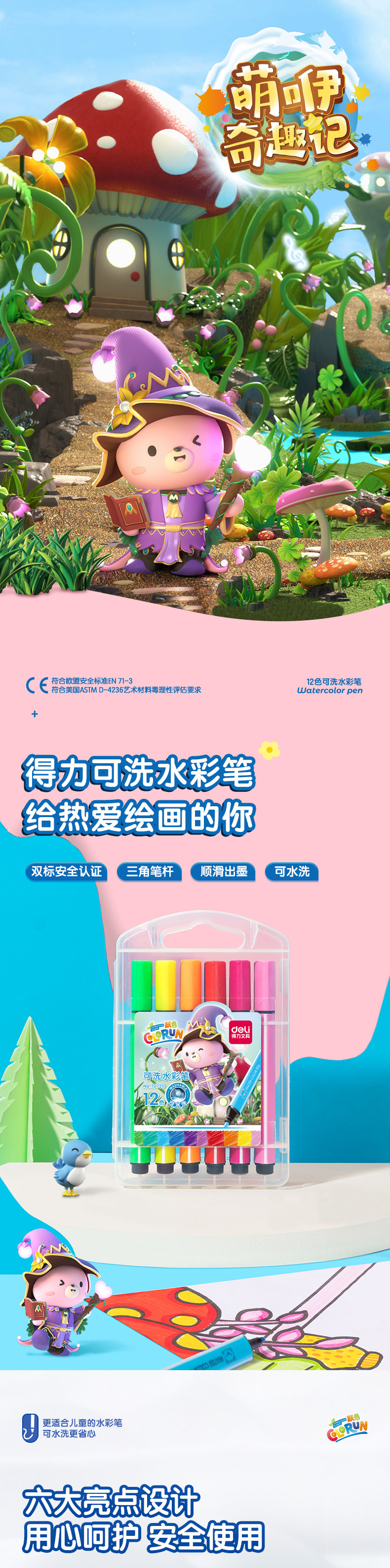 델리 70720 수채화 펜 학생 두꺼운 삼각형 수채화 펜 12/24/36/48 컬러 마크 펜스토어 가기
