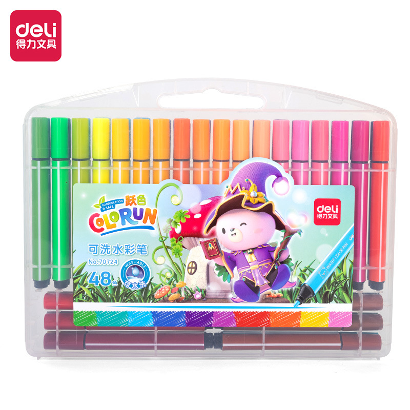 델리 70720 수채화 펜 학생 두꺼운 삼각형 수채화 펜 12/24/36/48 컬러 마크 펜