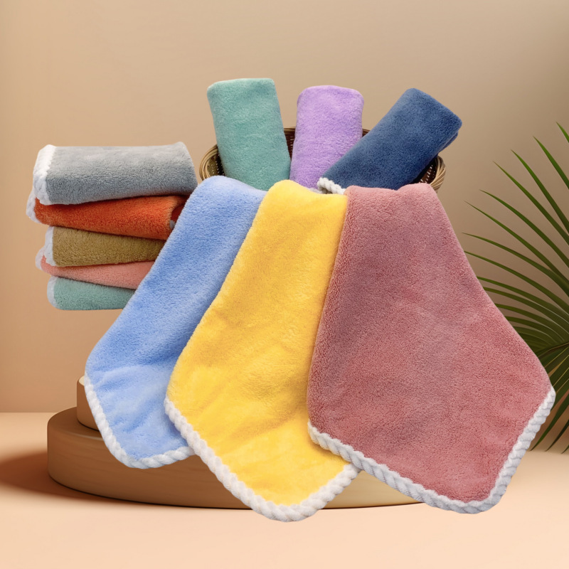 공장 도매 맞춤형 산호 벨벳 엣지 스퀘어 타월 핸드 타월 후크 어린이 스퀘어 타월 부드럽고 흡수성이 뛰어나며 보푸라기가 쉽지 않습니다.