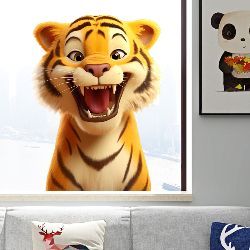 Yiyao JD3402 공장 직접 새로운 호랑이 유리 스티커 레스토랑 발코니 장식 창 슬라이딩 도어 정전기 스티커스토어 가기