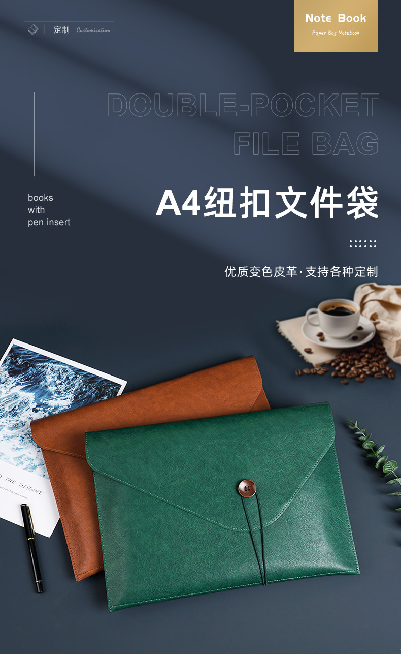 국경 간 비즈니스 가죽 파일 가방 A4 파일 가방 버튼 비즈니스 방수 폴더 휴대용 지폐 저장 가방스토어 가기