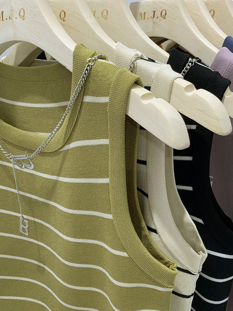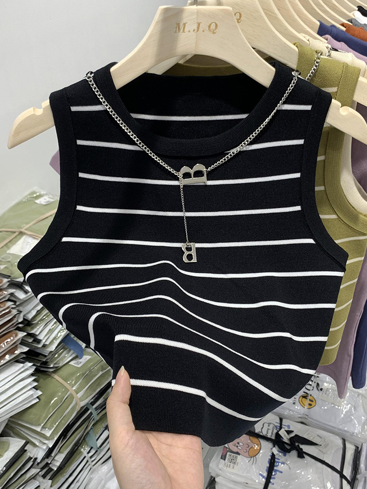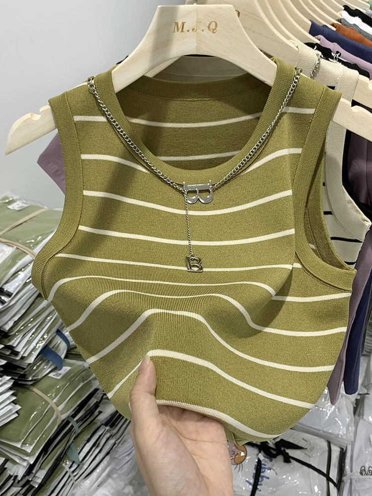 순수한 스파이스 소녀 스타일 높은 허리 배꼽 노출 짧은 줄무늬 조끼 여성의 여름 새로운 슬림 핏 민소매 탑