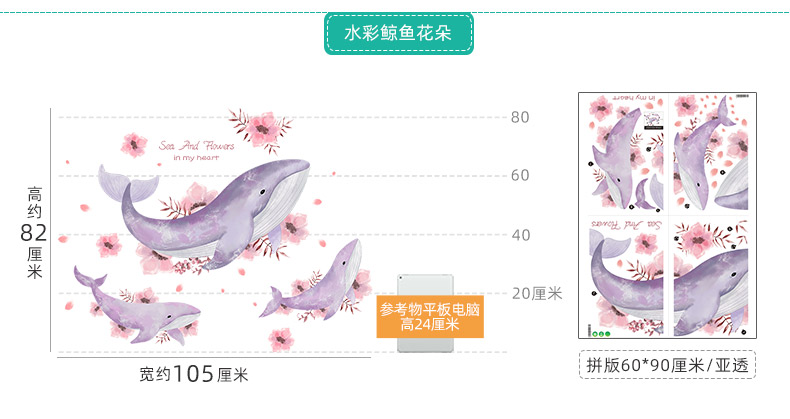 GJU8 만화 어린이 방 침실 침실 귀여운 고래 자기 접착 벽 스티커 욕실 장식 수중 세계 벽지스토어 가기