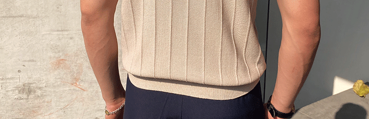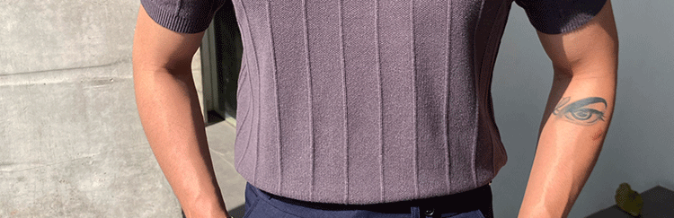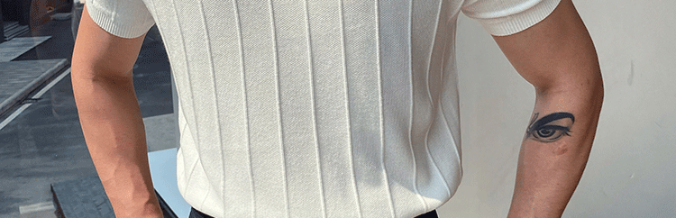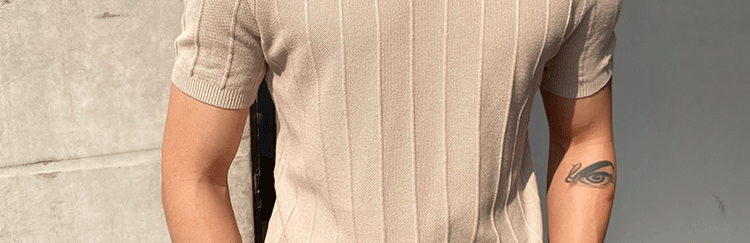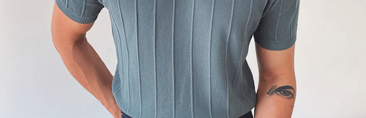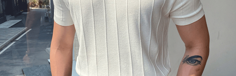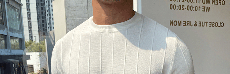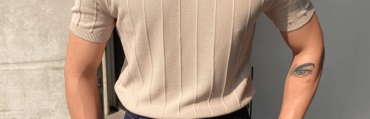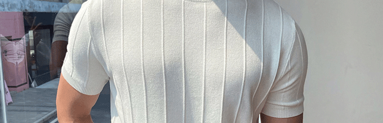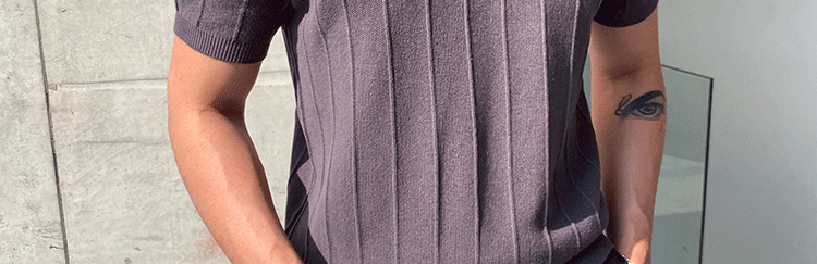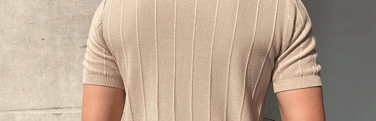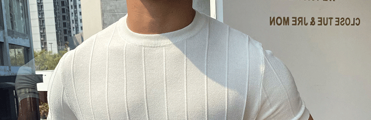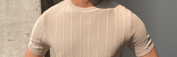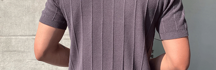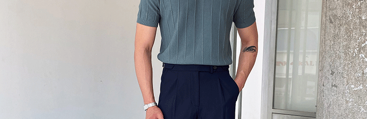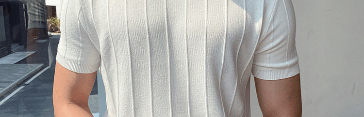 2024 년 여름 새로운 도착 한국 스타일 슬림 핏 니트 라운드 넥 반팔 티셔츠 남성 트렌디 티셔츠 유피 티셔츠 남성스토어 가기