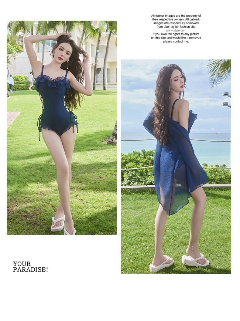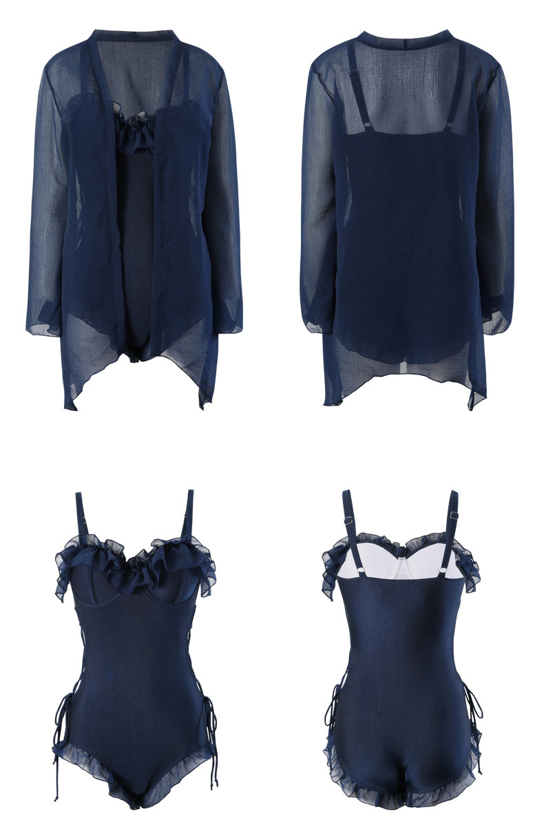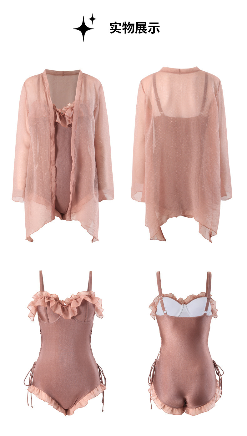 수영복 여성용 작은 가슴 모이기 요정 팬 2024 새로운 온천 원피스 긴팔 블라우스 순수한 바람 섹시한 수영복스토어 가기