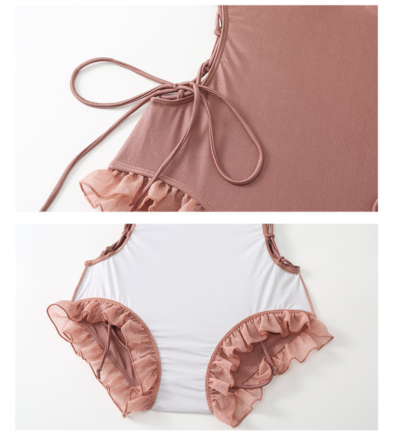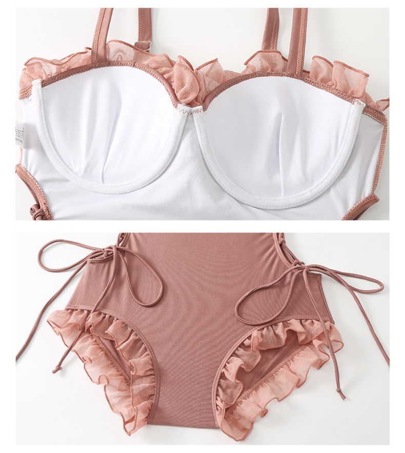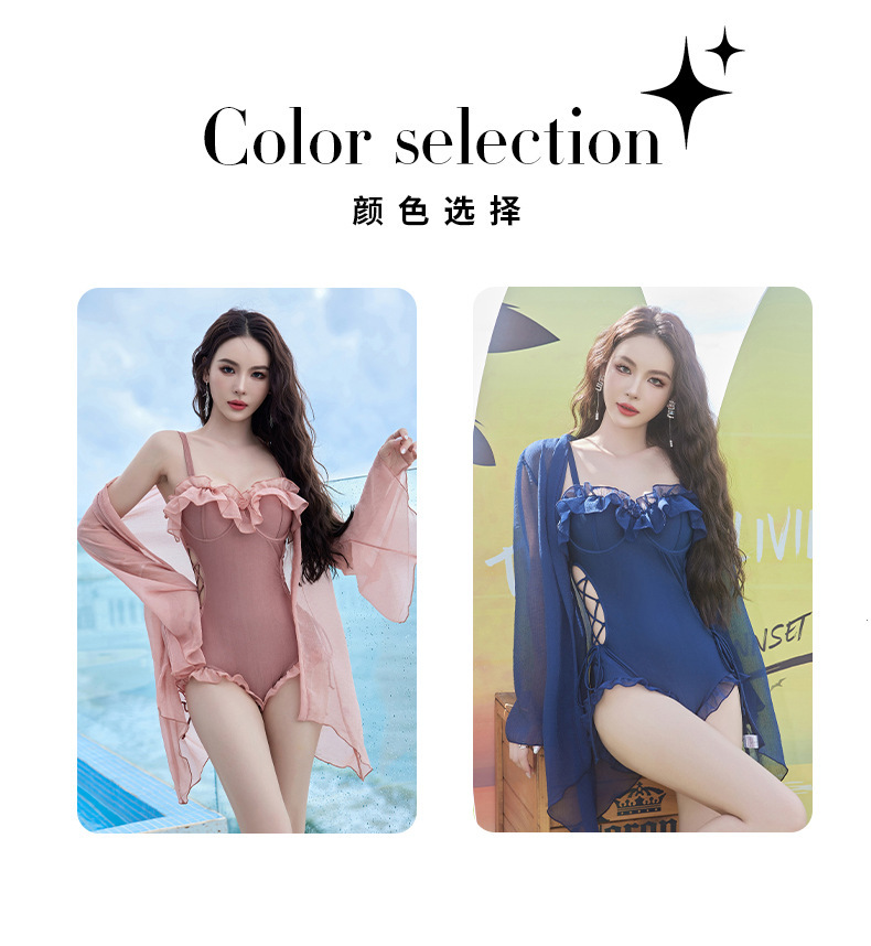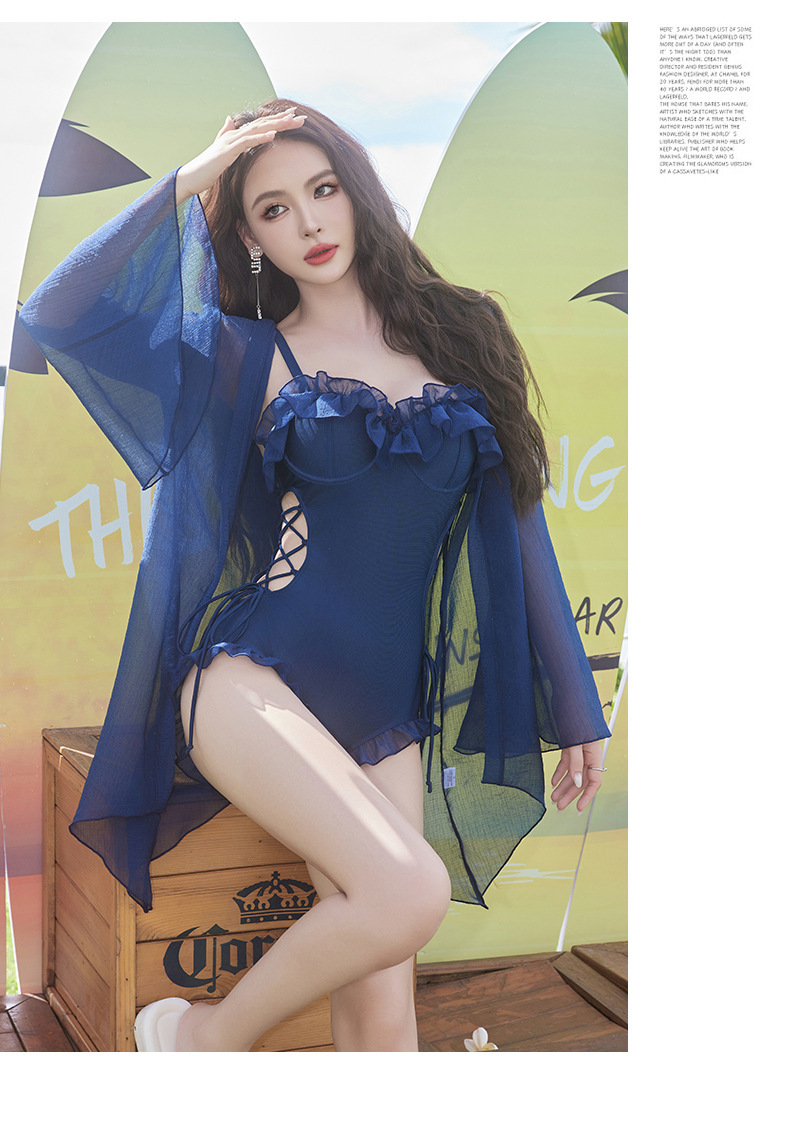수영복 여성용 작은 가슴 모이기 요정 팬 2024 새로운 온천 원피스 긴팔 블라우스 순수한 바람 섹시한 수영복