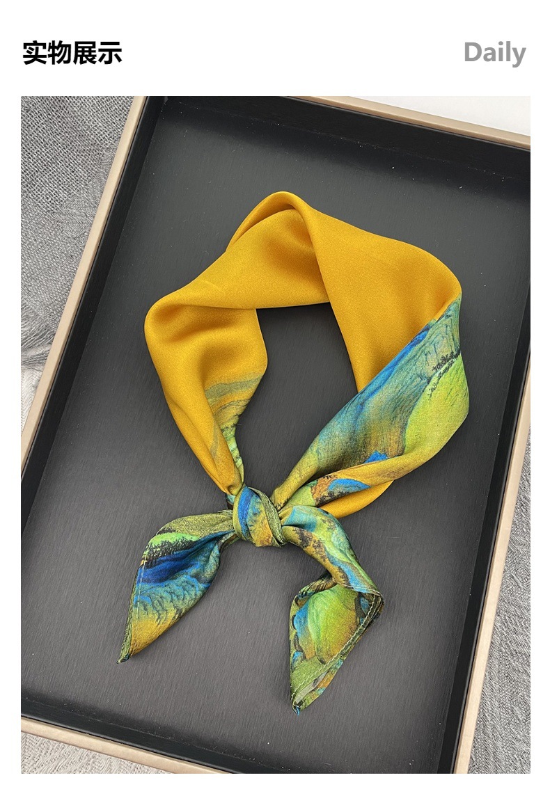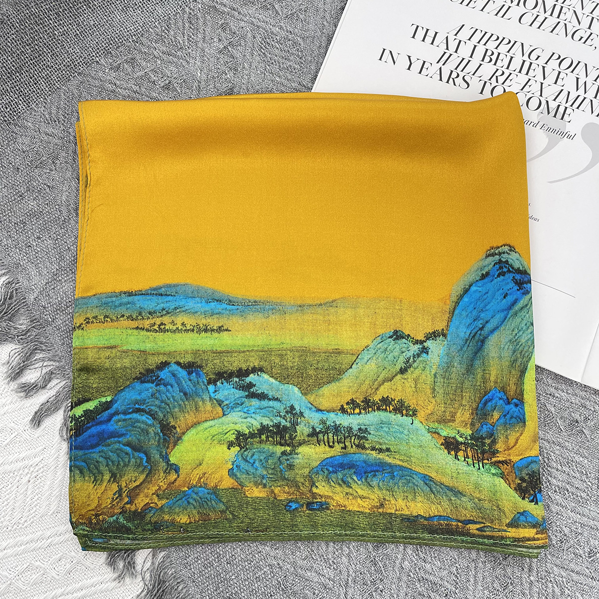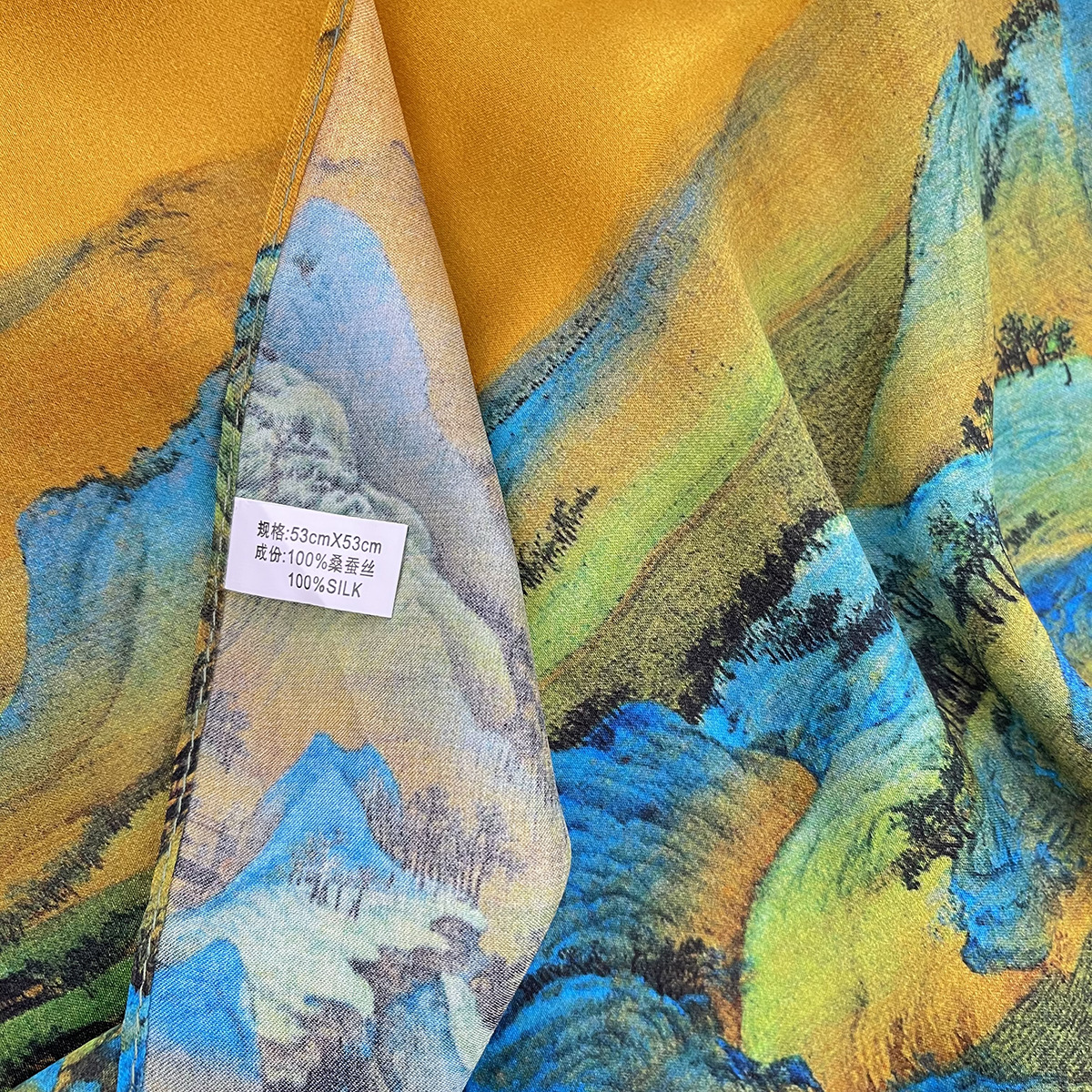 Qianli Jiangshan 인쇄 진짜 실크 스카프 소녀의 여름 유화 스타일 새로운 스타일 100 뽕나무 실크 스카프 53 작은 광장 스카프