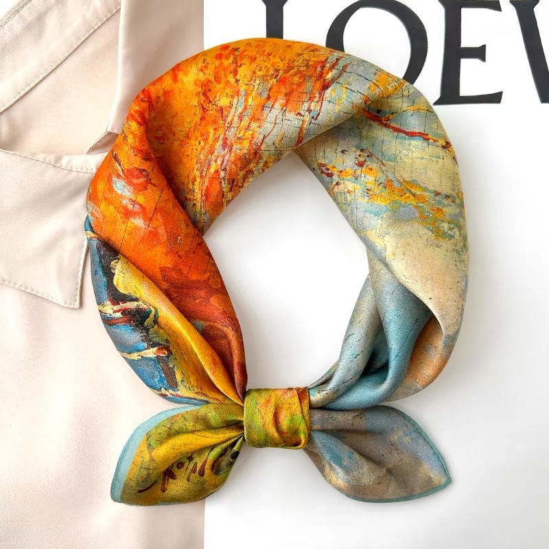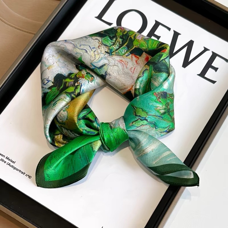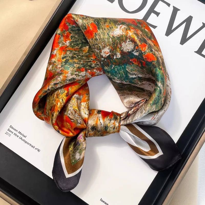 2024 새로운 스타일 실크 스퀘어 스카프 여성 한국 유화 100 뽕나무 실크 스카프 봄과 가을 장식 스카프 목도리 스카프스토어 가기