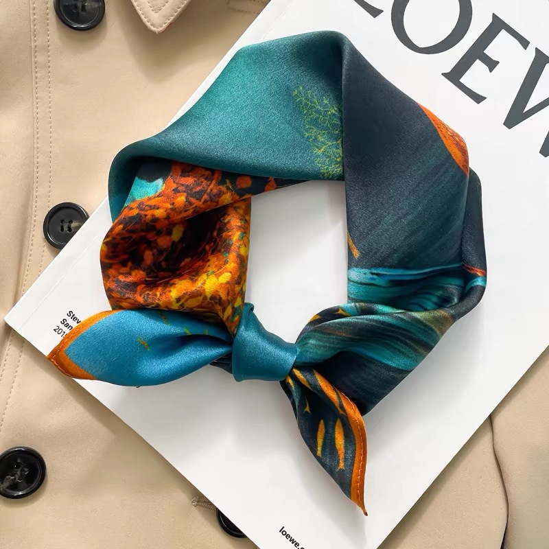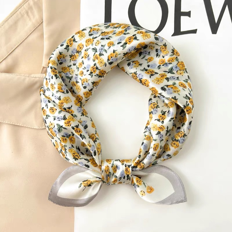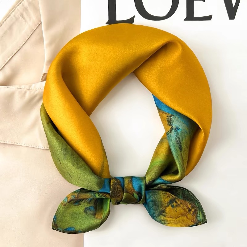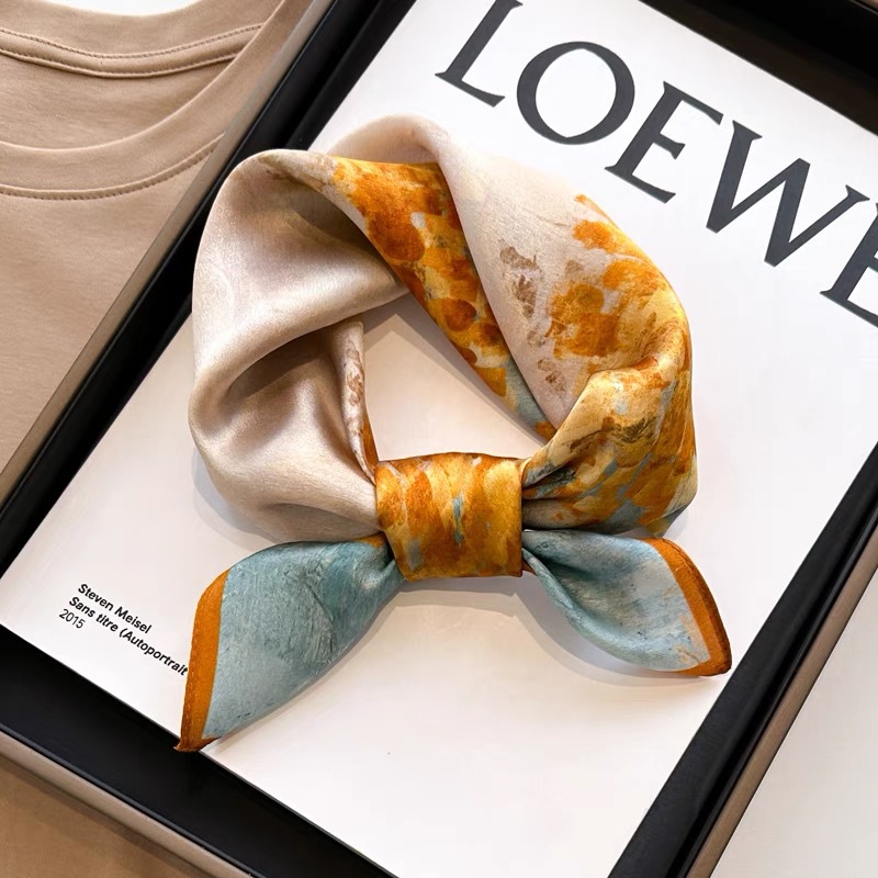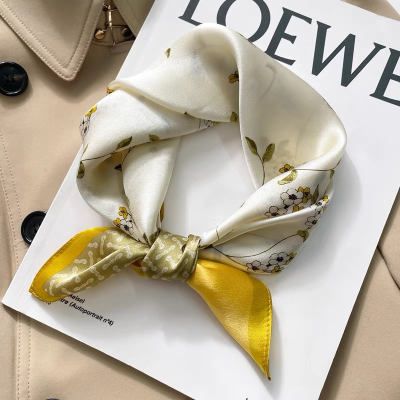 2024 새로운 스타일 실크 스퀘어 스카프 여성 한국 유화 100 뽕나무 실크 스카프 봄과 가을 장식 스카프 목도리 스카프