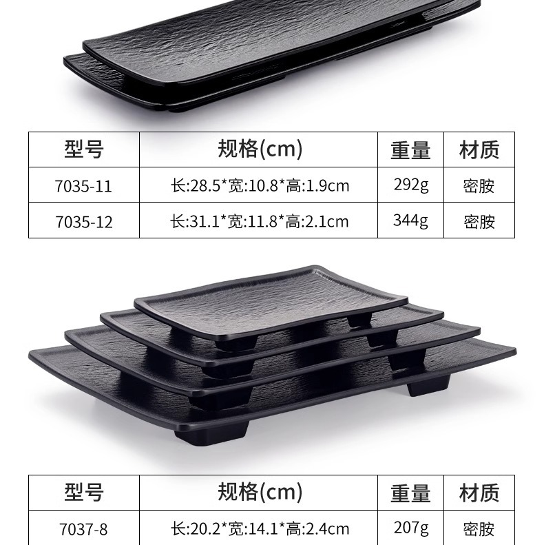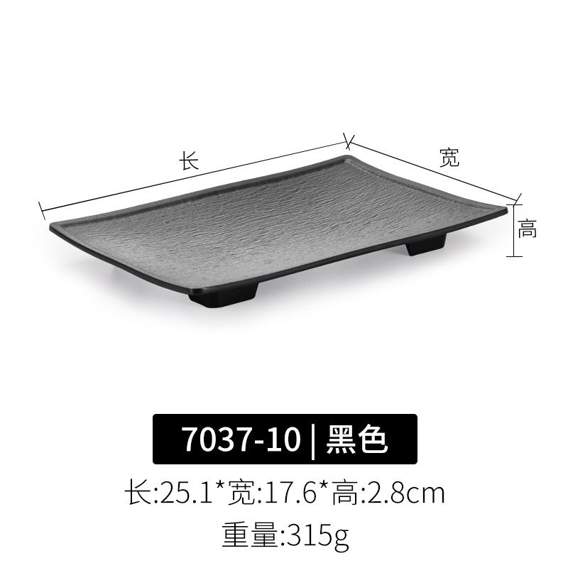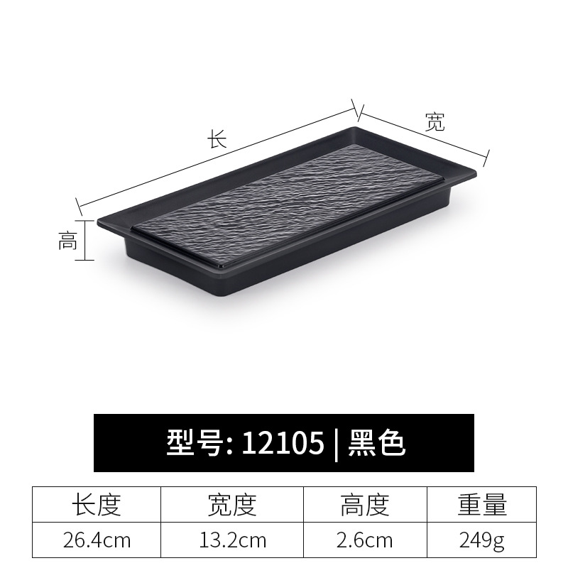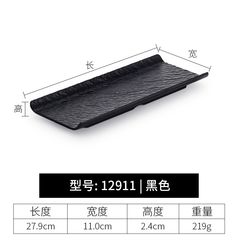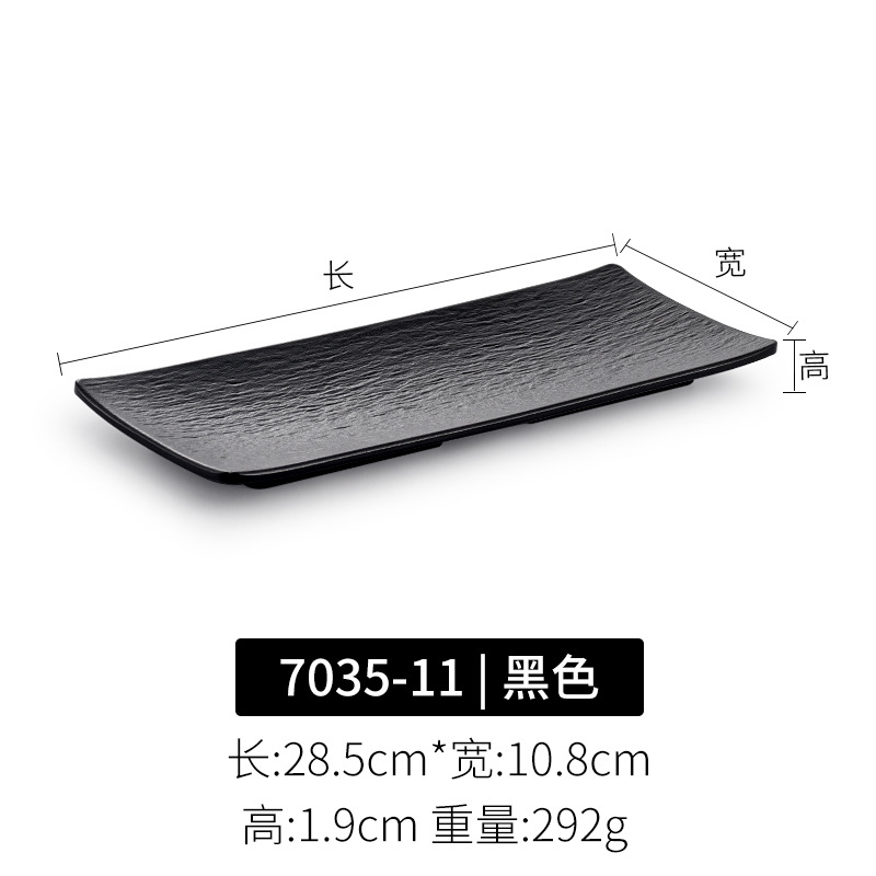 멜라민 직사각형 접시 일본 모조 도자기 검은 스시 접시 냄비 식기 바베큐 바베큐 접시 접시 접시 상업스토어 가기