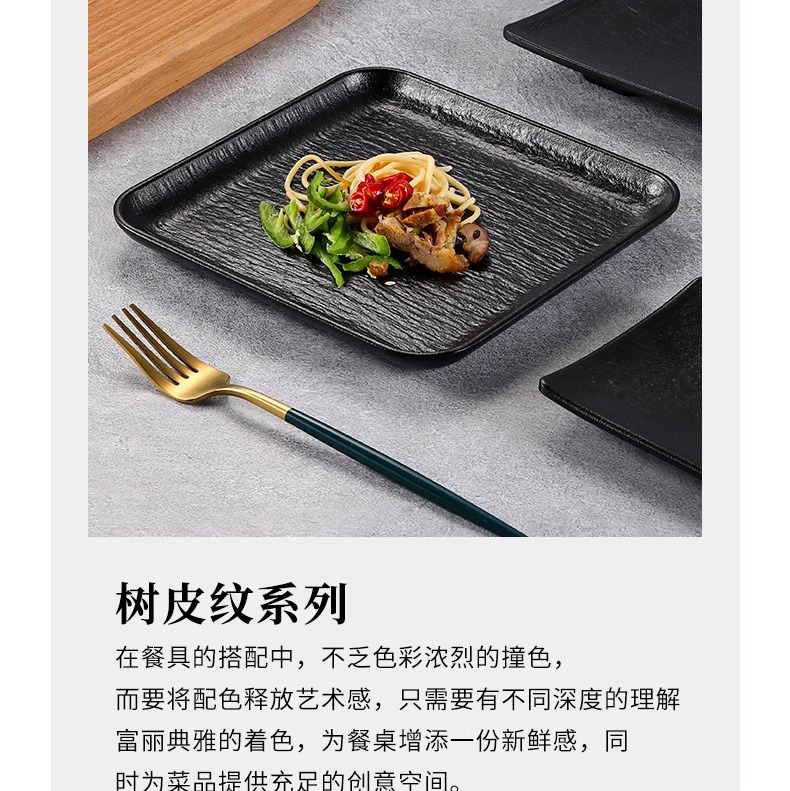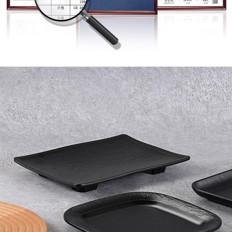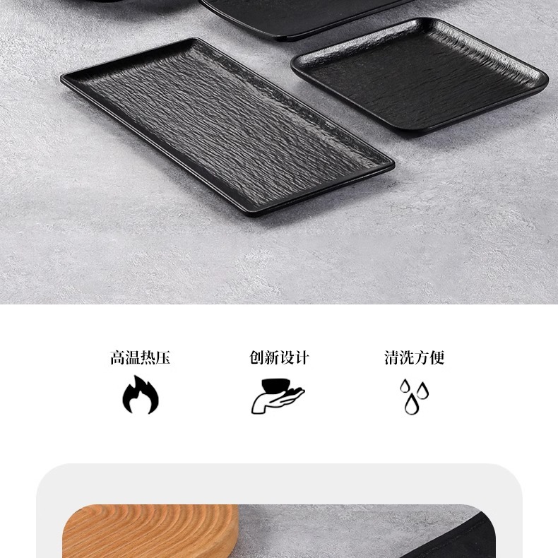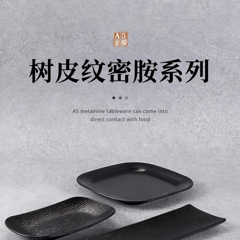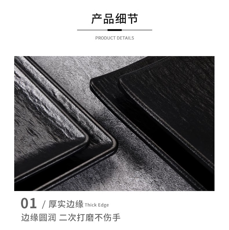 멜라민 직사각형 접시 일본 모조 도자기 검은 스시 접시 냄비 식기 바베큐 바베큐 접시 접시 접시 상업스토어 가기