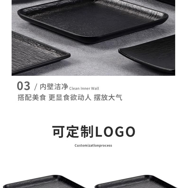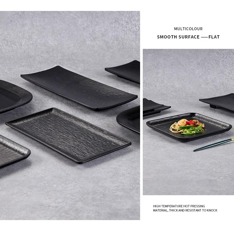 멜라민 직사각형 접시 일본 모조 도자기 검은 스시 접시 냄비 식기 바베큐 바베큐 접시 접시 접시 상업