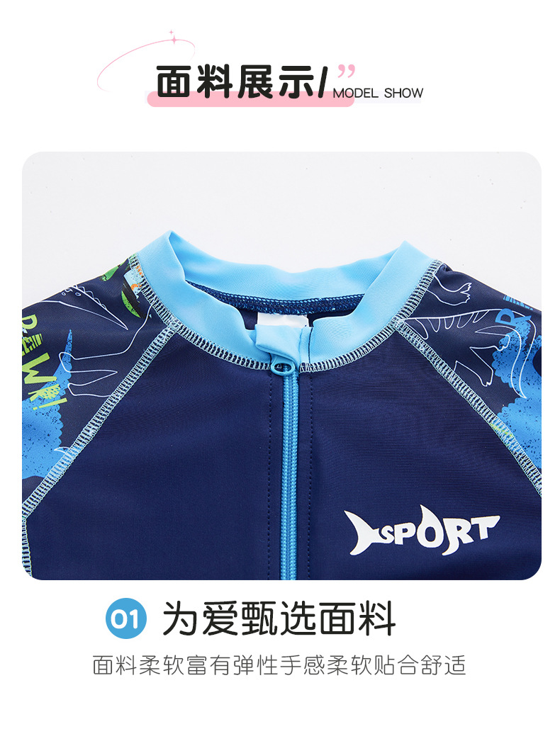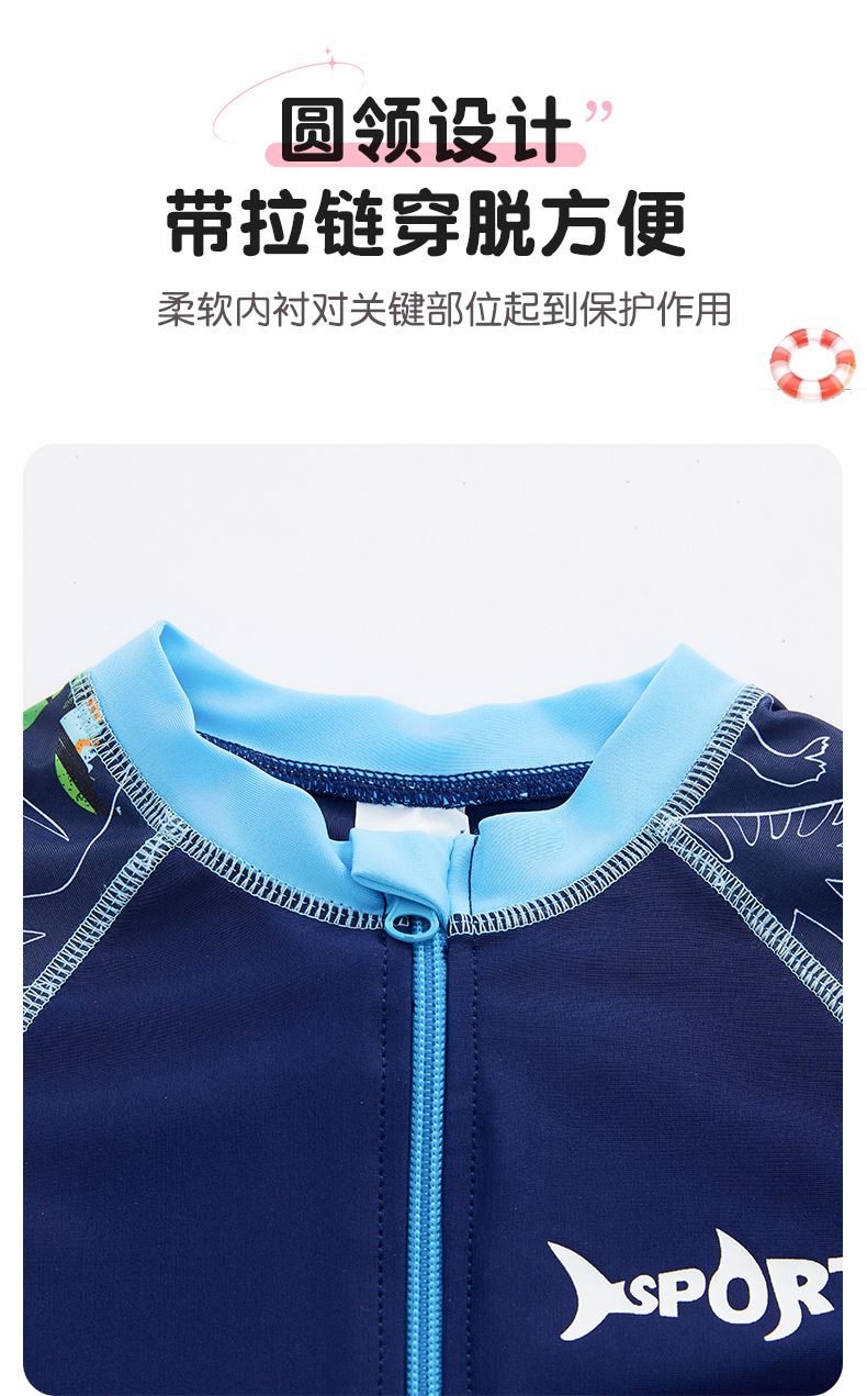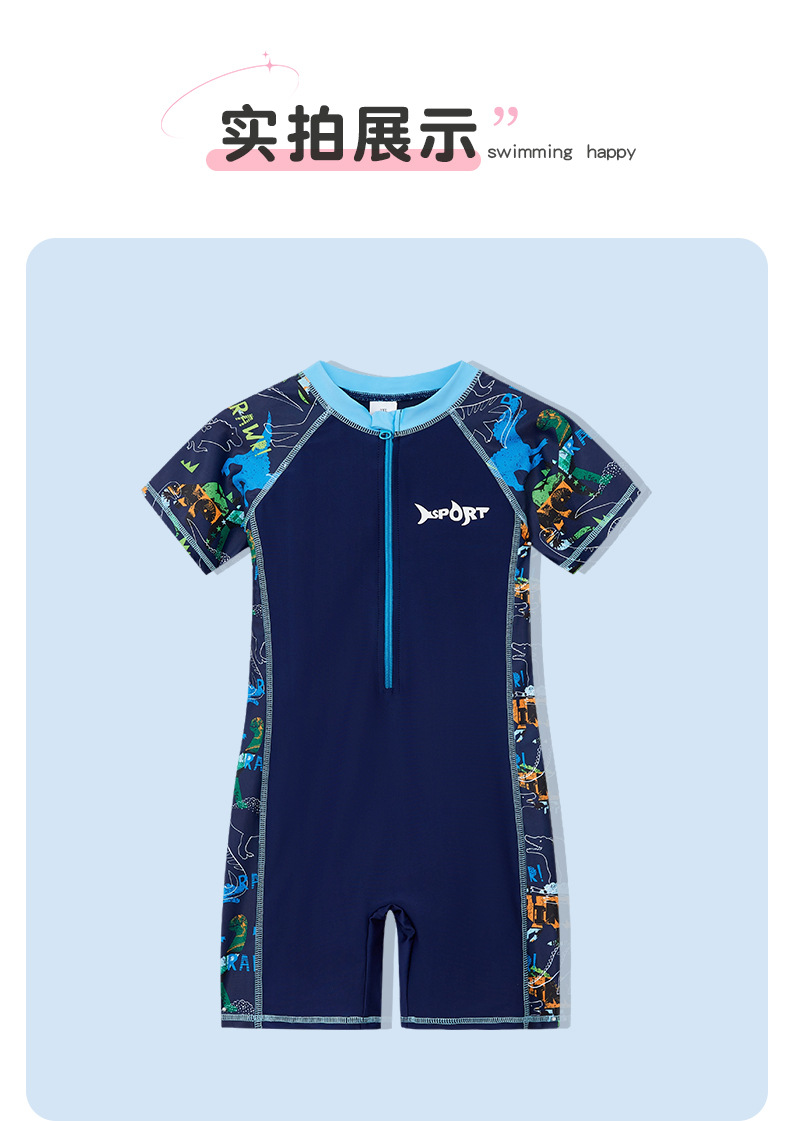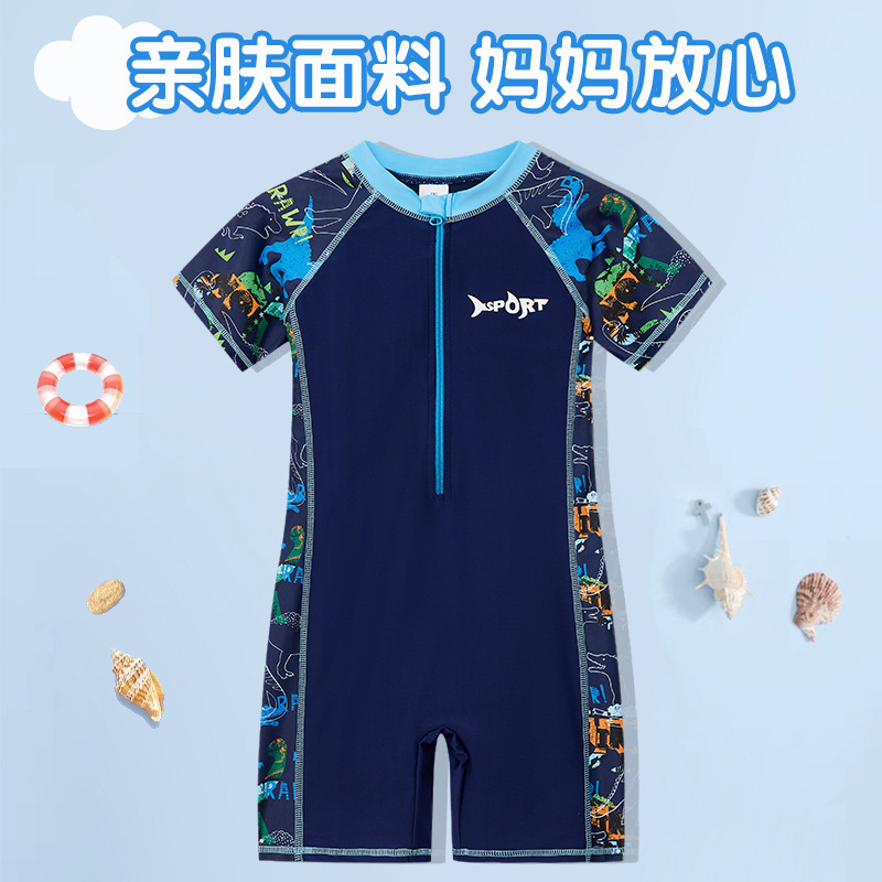 어린이 수영복 원피스 소년 2025 새로운 소년 수영복 중형 및 대형 어린이 수영복 공룡 인쇄 태양 보호 슈트