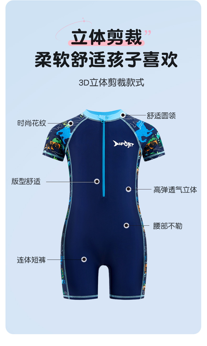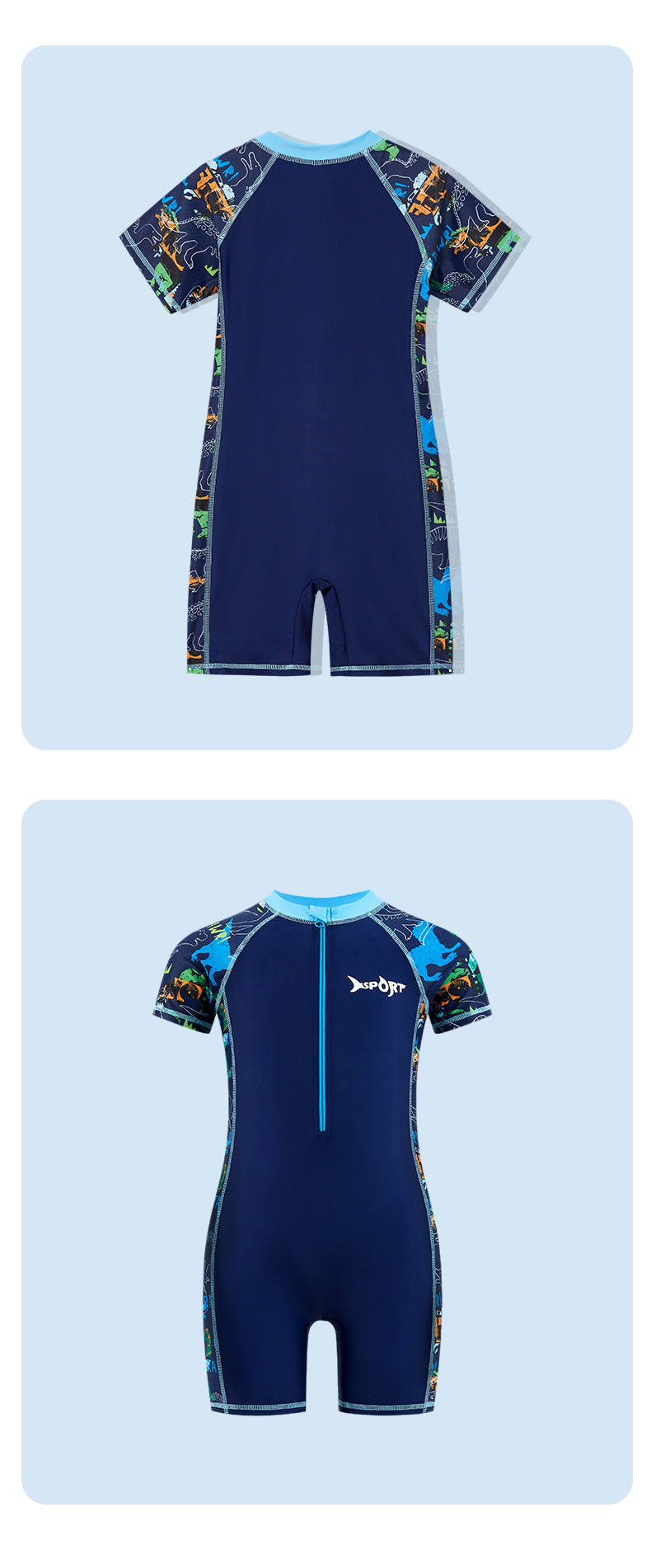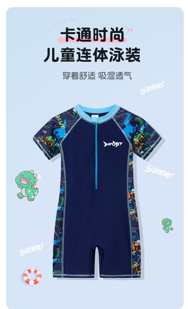 어린이 수영복 원피스 소년 2025 새로운 소년 수영복 중형 및 대형 어린이 수영복 공룡 인쇄 태양 보호 슈트