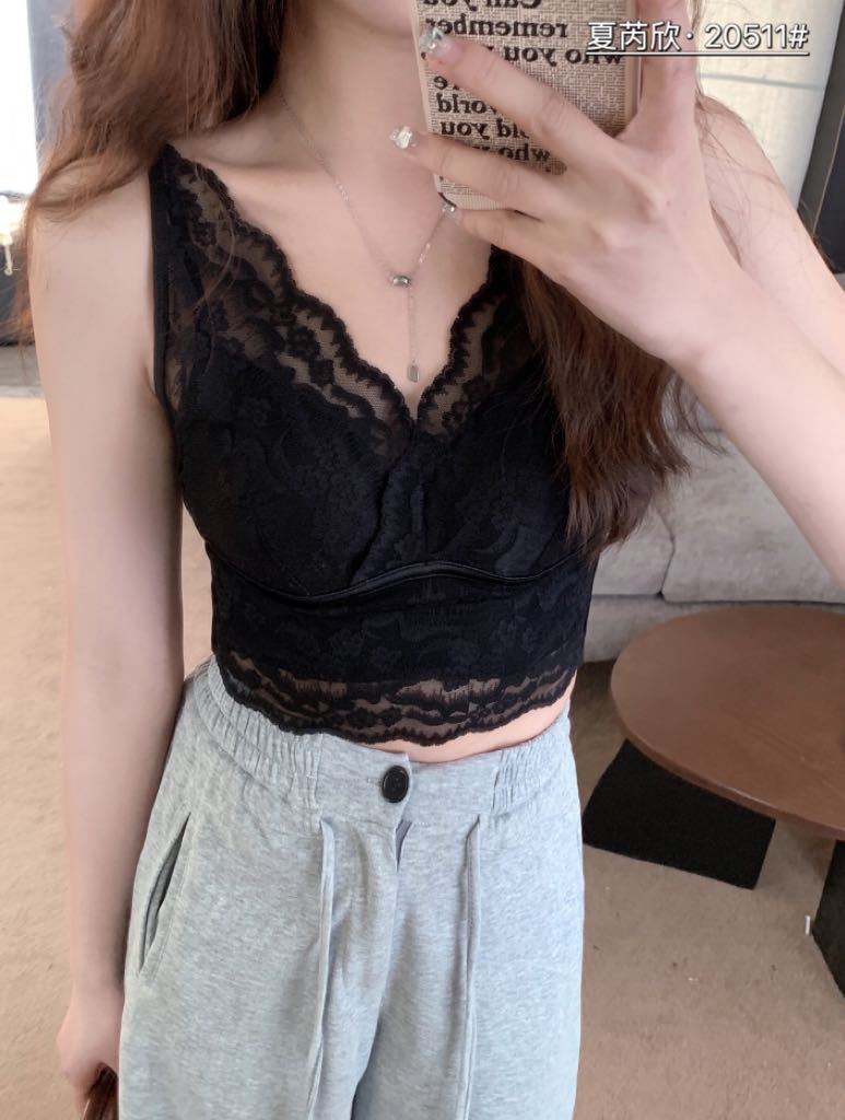봄과 여름 새로운 올인원 라텍스 패드 편안한 아우터 착용 여성용 섹시한 할로우 레이스 뷰티 백 카미 솔 조끼스토어 가기
