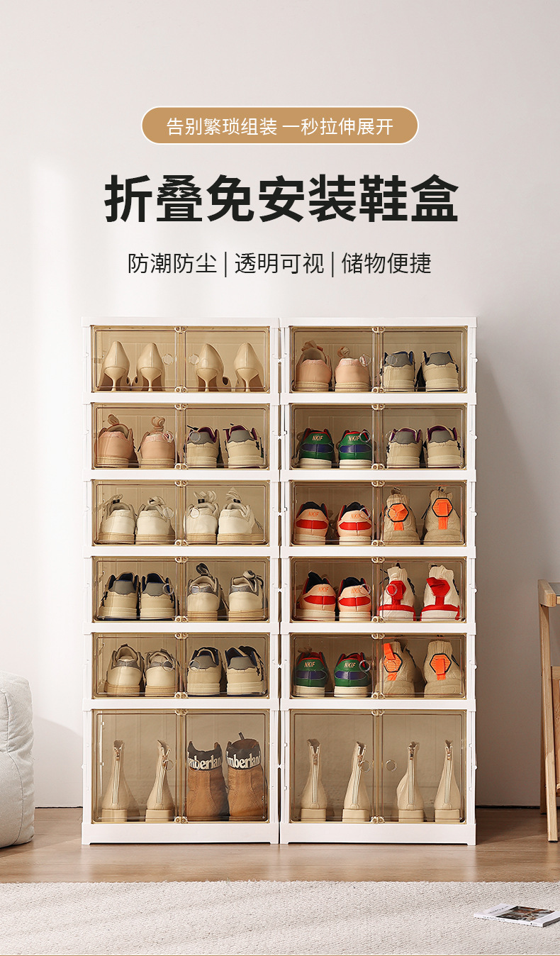 설치 무료 원피스 신발 캐비닛 현대 간단한 투명 플라스틱 보관 신발 랙 접이식 공간 절약 고급 신발 상자