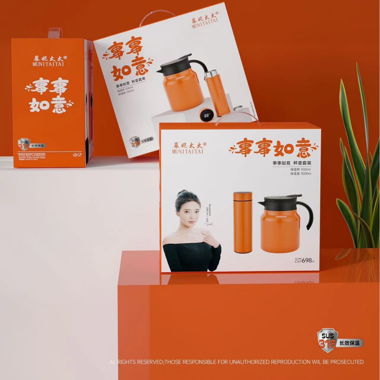 새로운 스튜 냄비 스테인레스 스틸 답답한 주전자 보온병 컵 세트 진공 버블 포트 조합 직원 복지 보험 선물스토어 가기