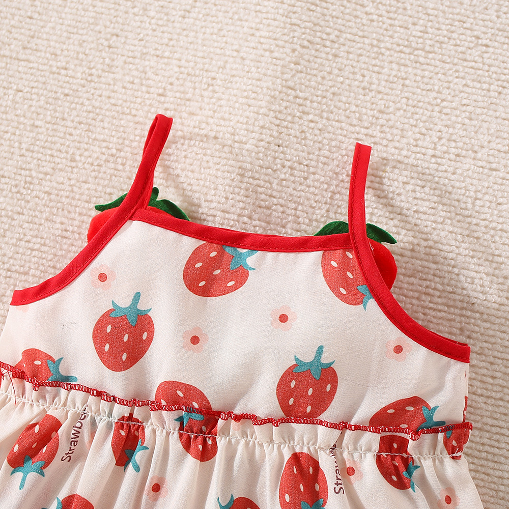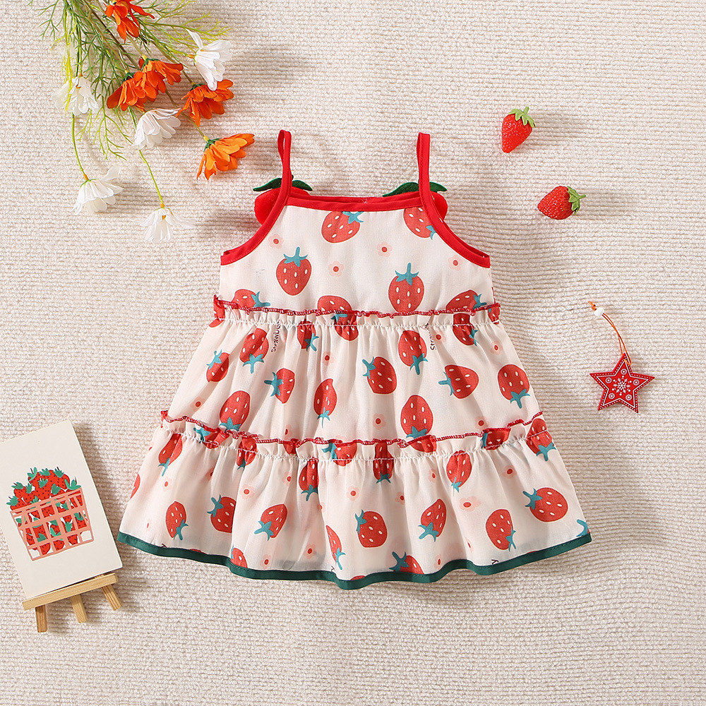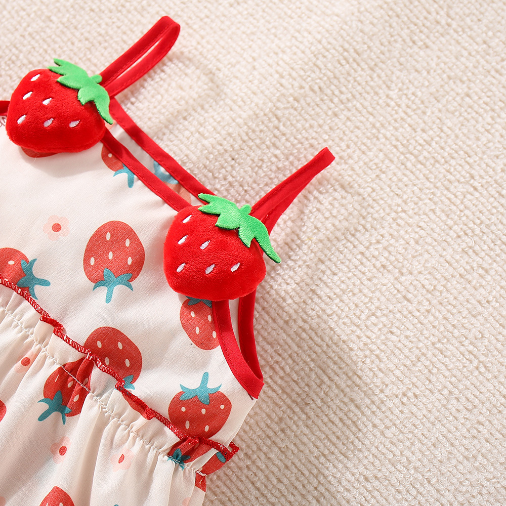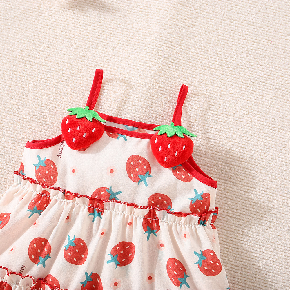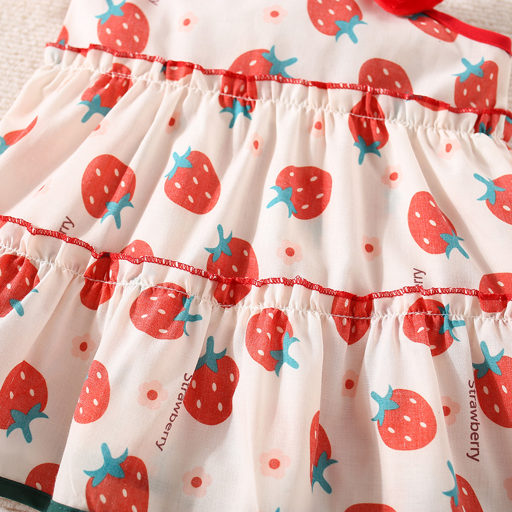 여름 새로운 소녀 입체 딸기 라자냐 원피스