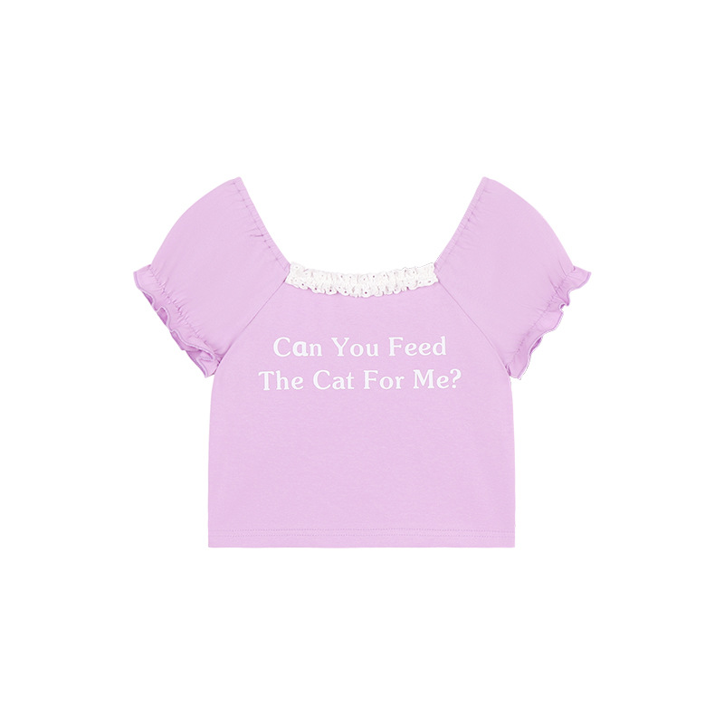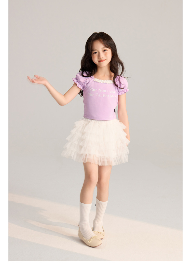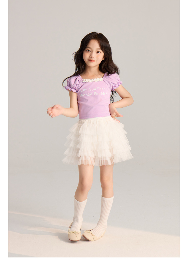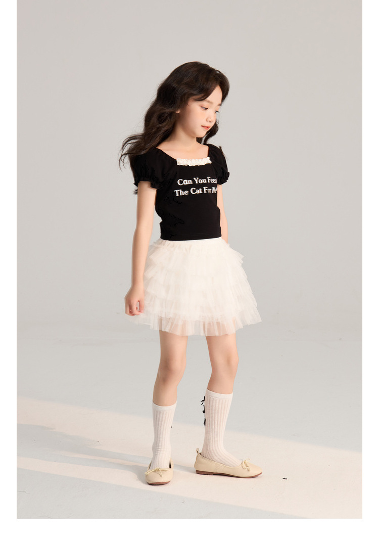 Amybaby Girls 티셔츠 2024 여름 새로운 간단한 통기성 미국 편지 인쇄 캐주얼 레이스 짧은 소매