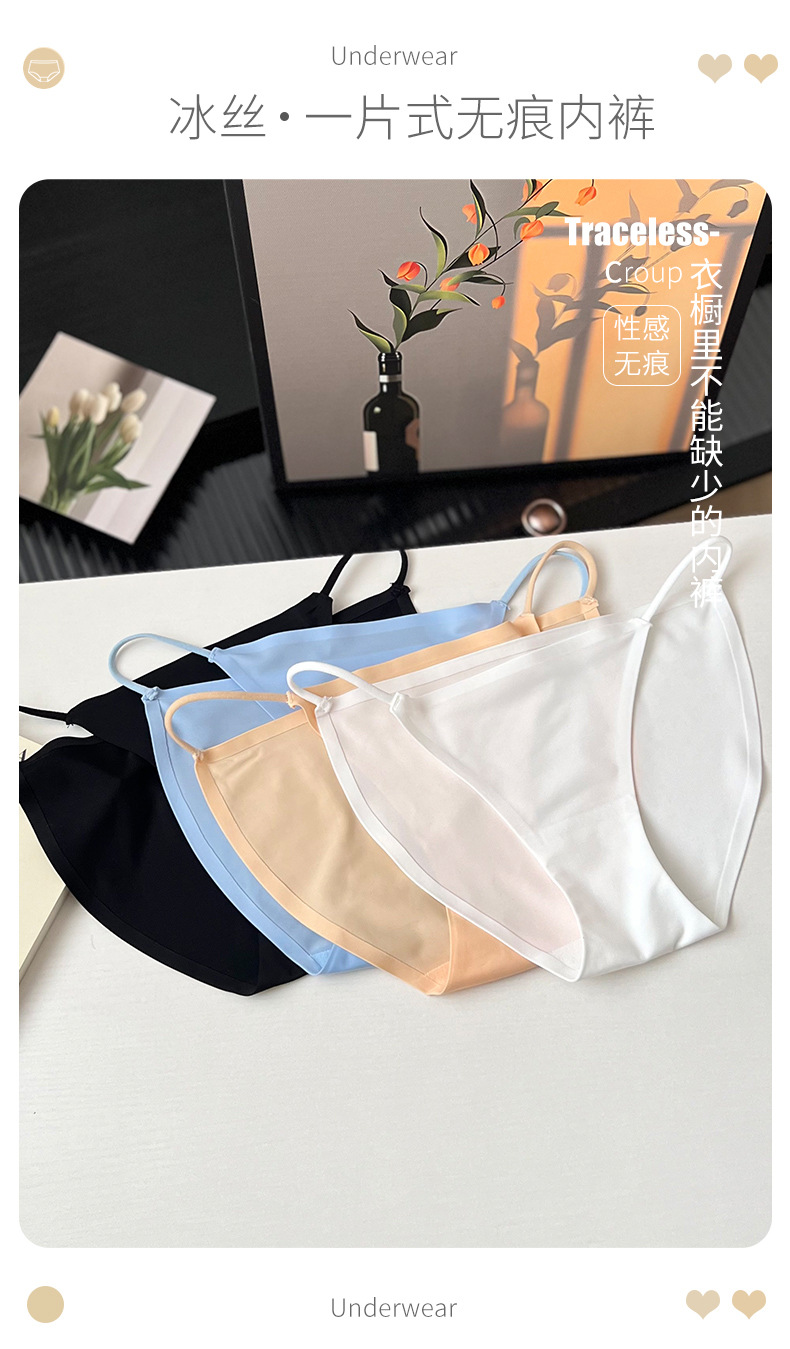 여름 얇은 아이스 실크 추적없는 속옷 여성용 원피스 얇은 벨트 순수 코튼 크로트 통기성 빠른 건조 삼각형 반바지 머리스토어 가기