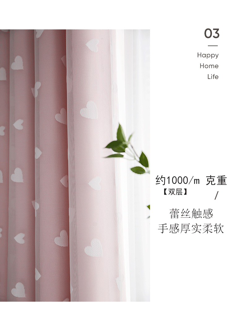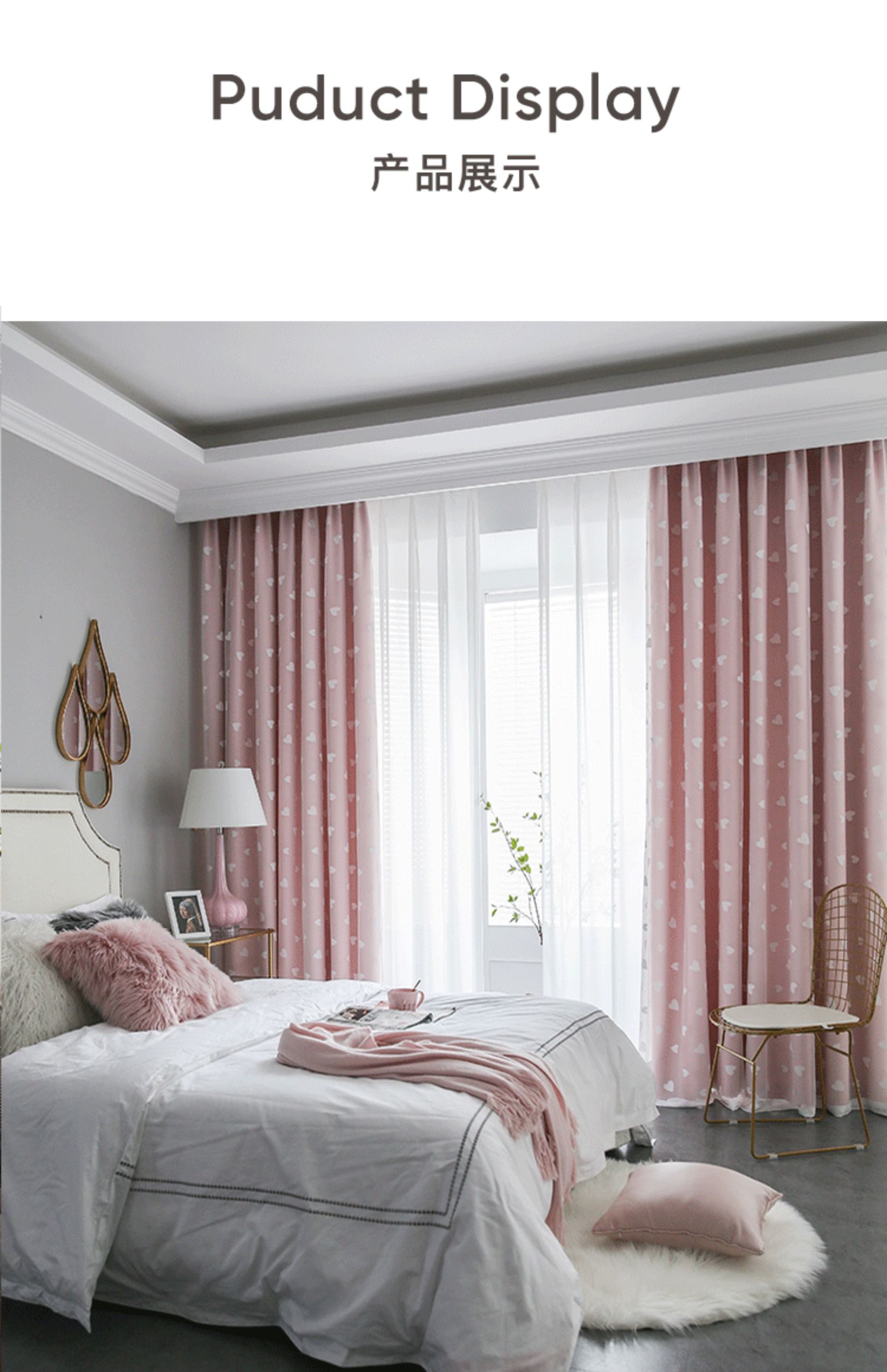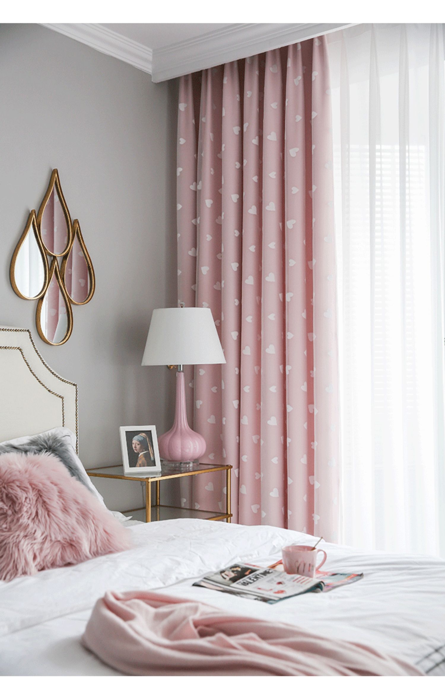 BTV4 한국식 핑크 사랑 음영 더블 레이어 커튼 어린 소녀 공주 방 어린이 커튼 침실 베이 창 꿈