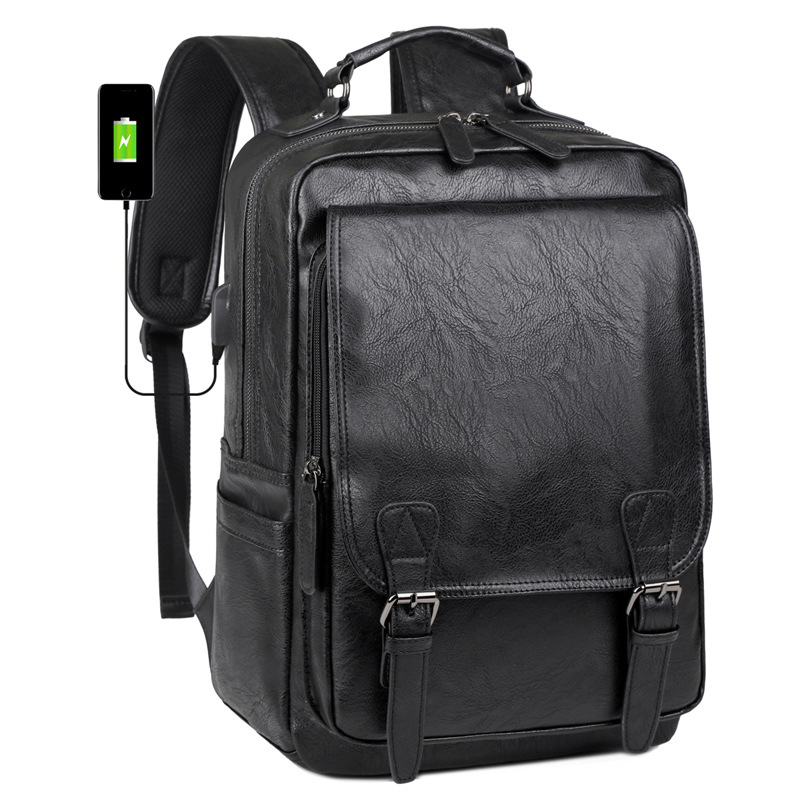 캐주얼 배낭 남자의 간단한 대용량 USB 충전식 배낭 여행 방수 가죽 학생 학교 가방 컴퓨터스토어 가기