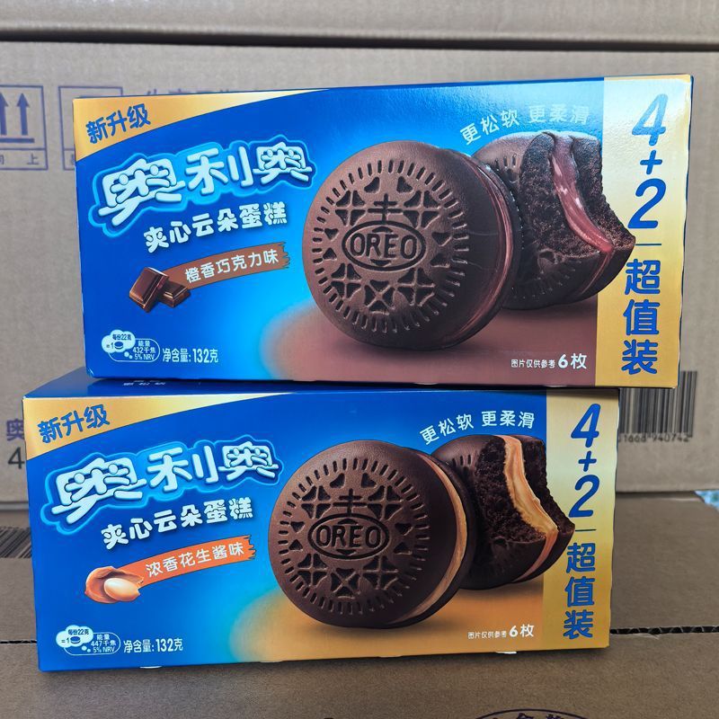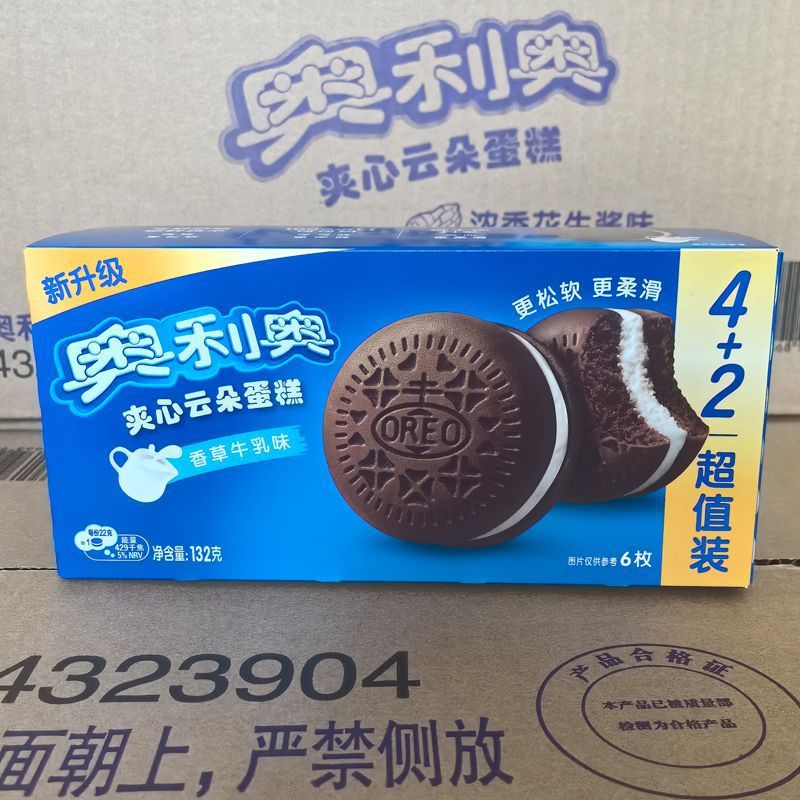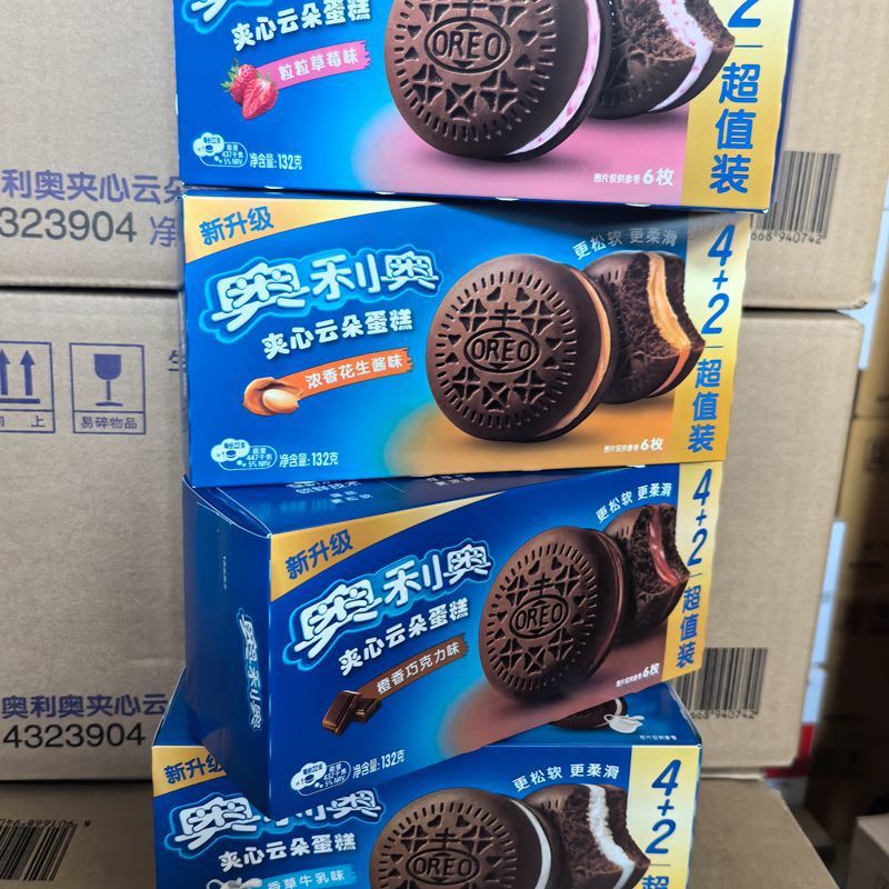 오레오 샌드위치 구름 케이크 전체 케이스 도매 바닐라 딸기 우유 맛 부드러운 빵 키즈 아침 식사 스낵스토어 가기