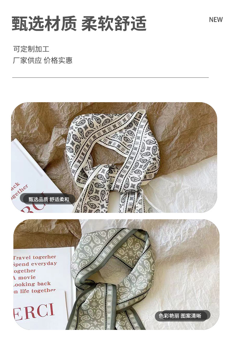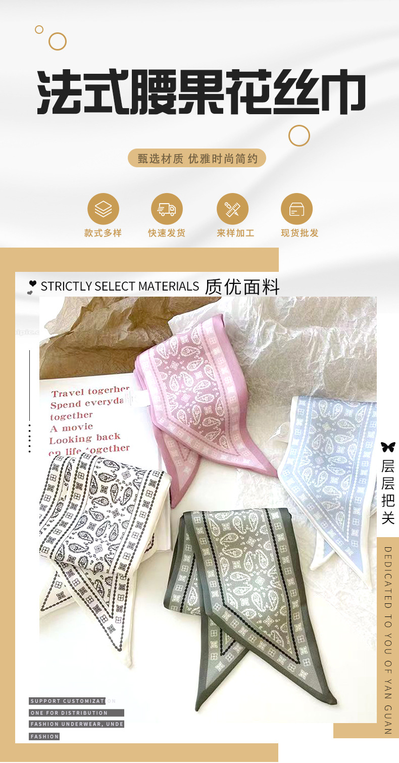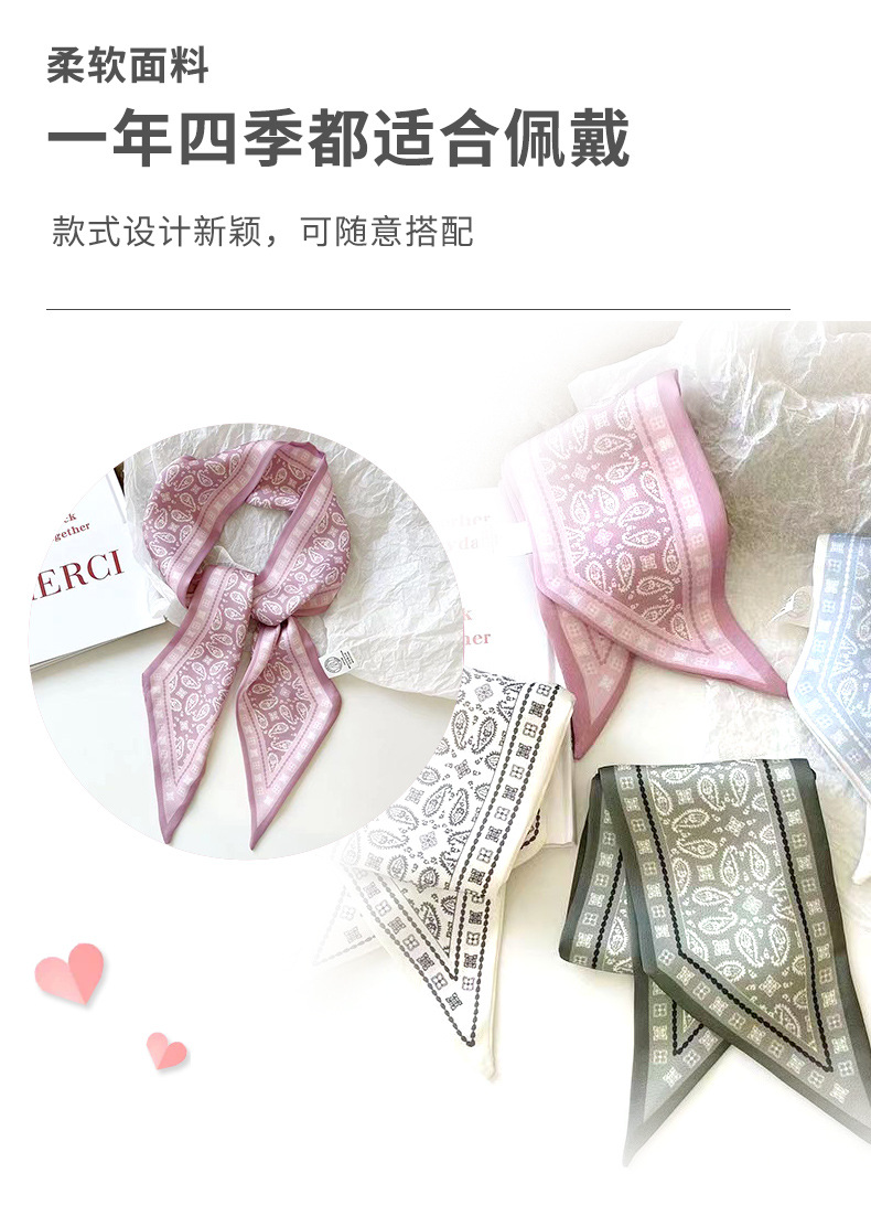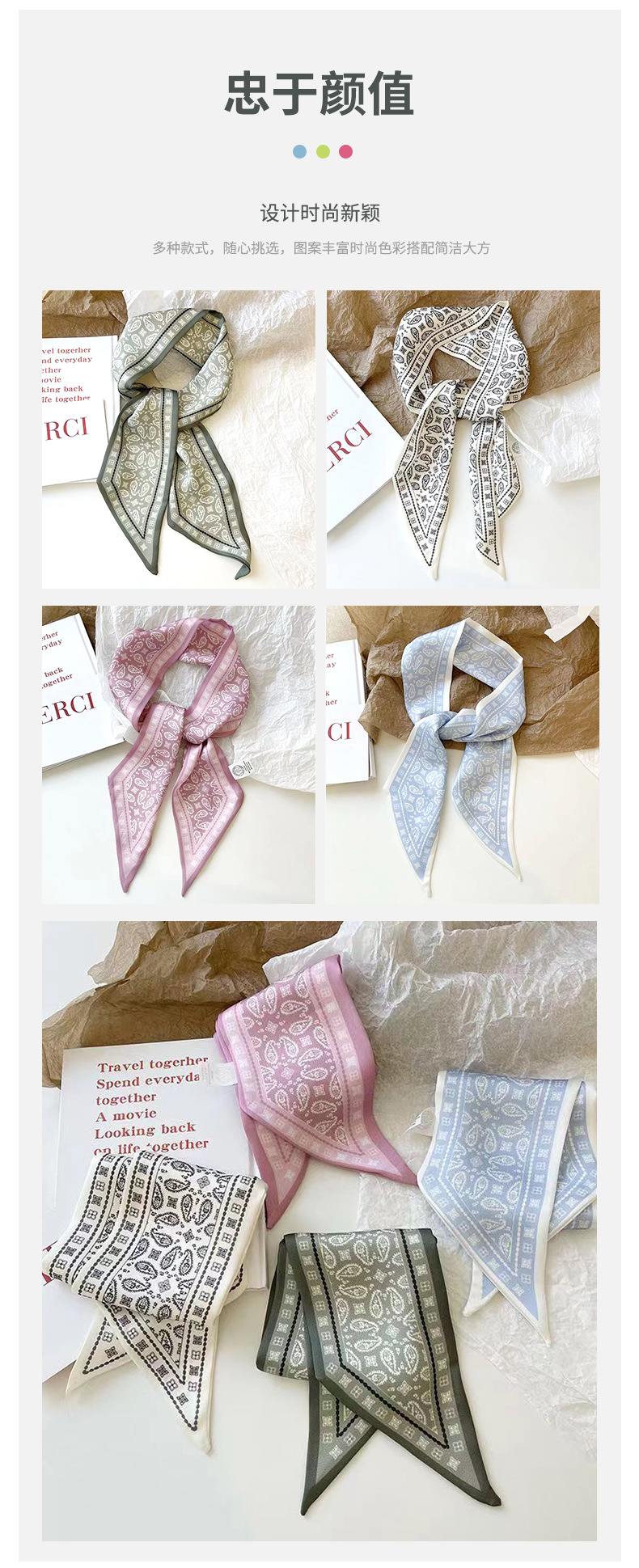프랑스 스타일 캐슈 꽃 빈티지 리본 포니 테일 활 짠 헤어 벨트 가방 손잡이 넥타이 가방 선물 상자 작은 실크 스카프