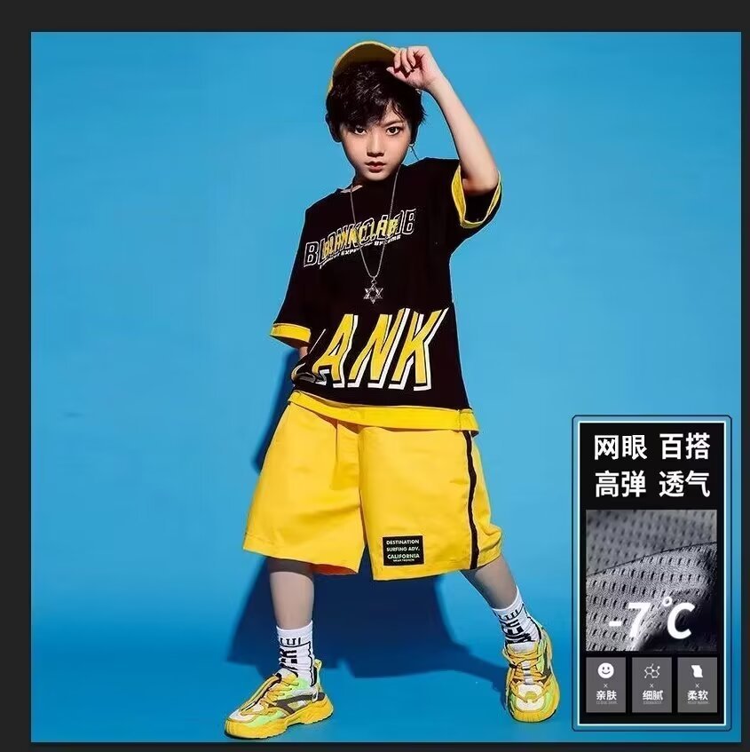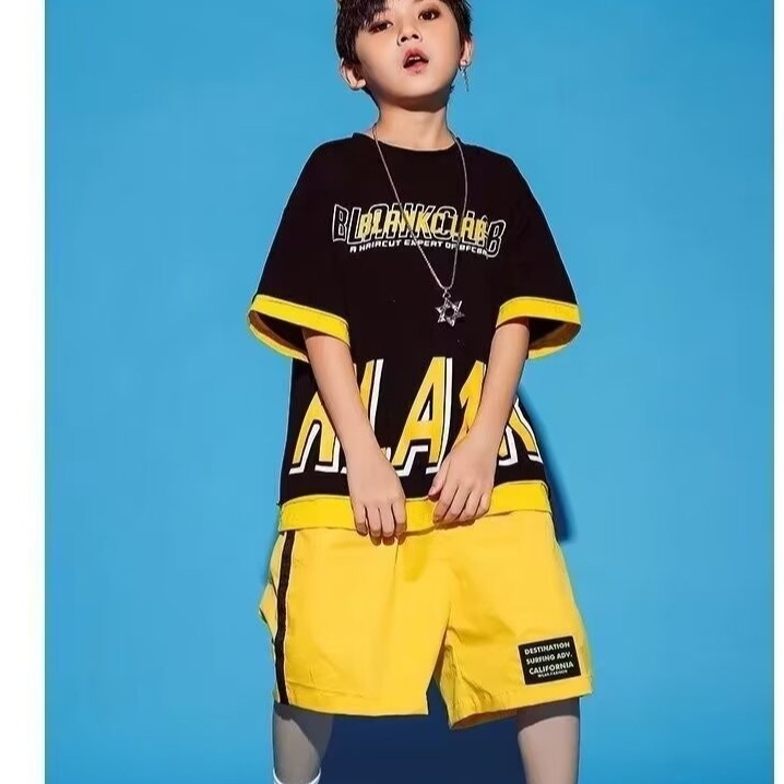어린이 편지 인쇄 티셔츠 반소매 소년 느슨한 여름 세트 반소매 빠른 건조 반소매 소년 옷스토어 가기
