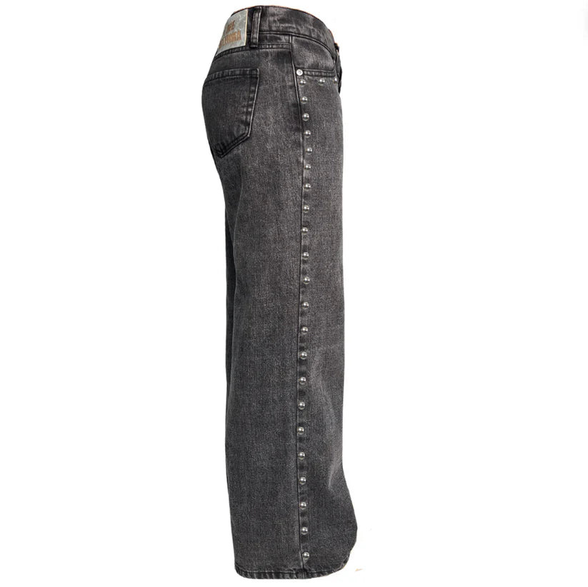 하이 스트리트 팬츠 여성의 봄 복고풍 인쇄 청바지 느슨한 높은 허리 슬리밍 유행 직선 다리 넓은 다리 바지스토어 가기