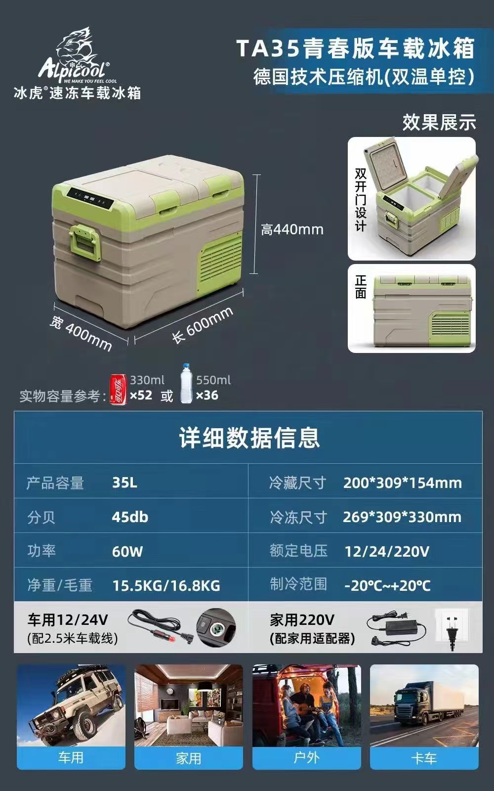 • CLD35 더블 도어 이중 온도 단일 제어 홈 자동차 이중 목적