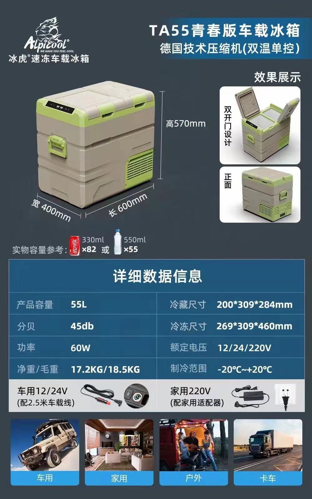 • CLD55 더블 도어 이중 온도 단일 제어 가족 자동차 이중 목적