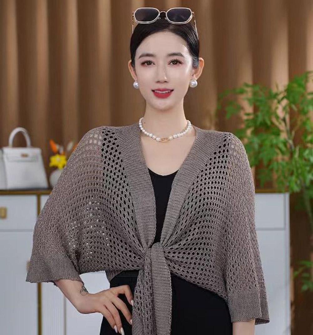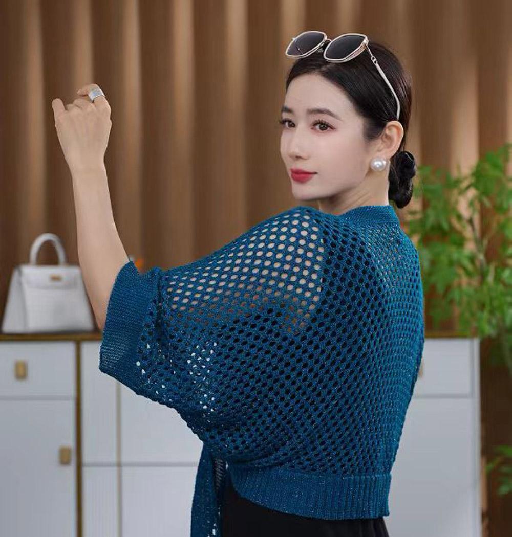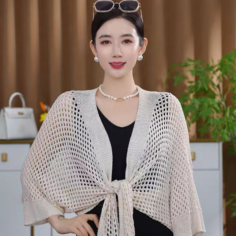 새로운 스타일 니트 패션 서양식 선스크린 에어컨 목도리 비싼 가스 실버 나비 소매 아이스 실크 할로우 목도리스토어 가기