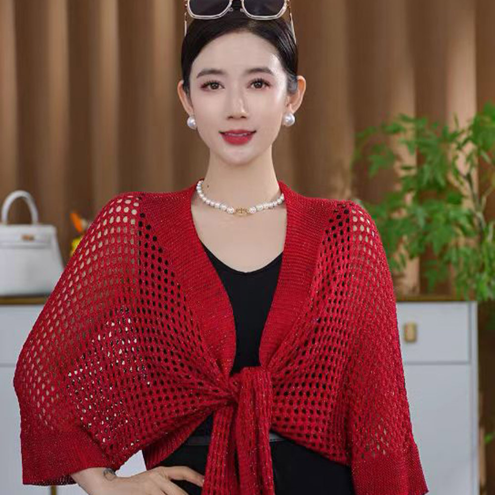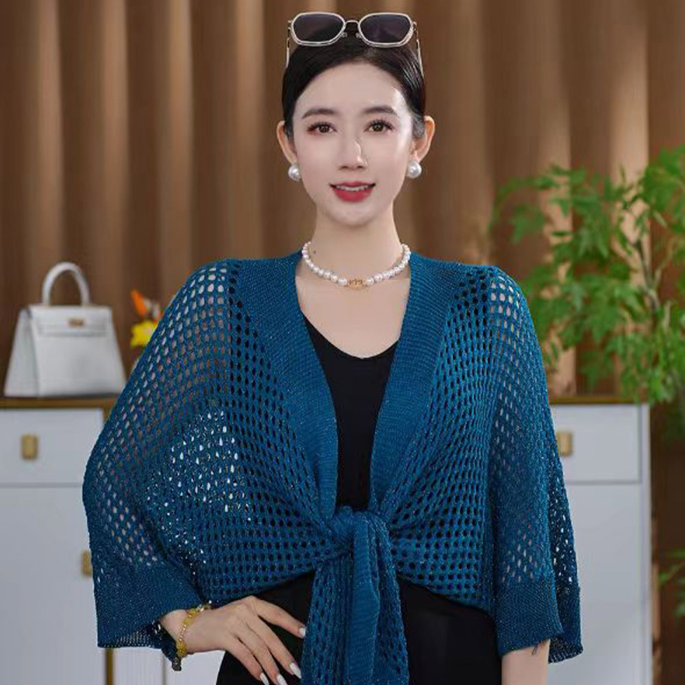 새로운 스타일 니트 패션 서양식 선스크린 에어컨 목도리 비싼 가스 실버 나비 소매 아이스 실크 할로우 목도리