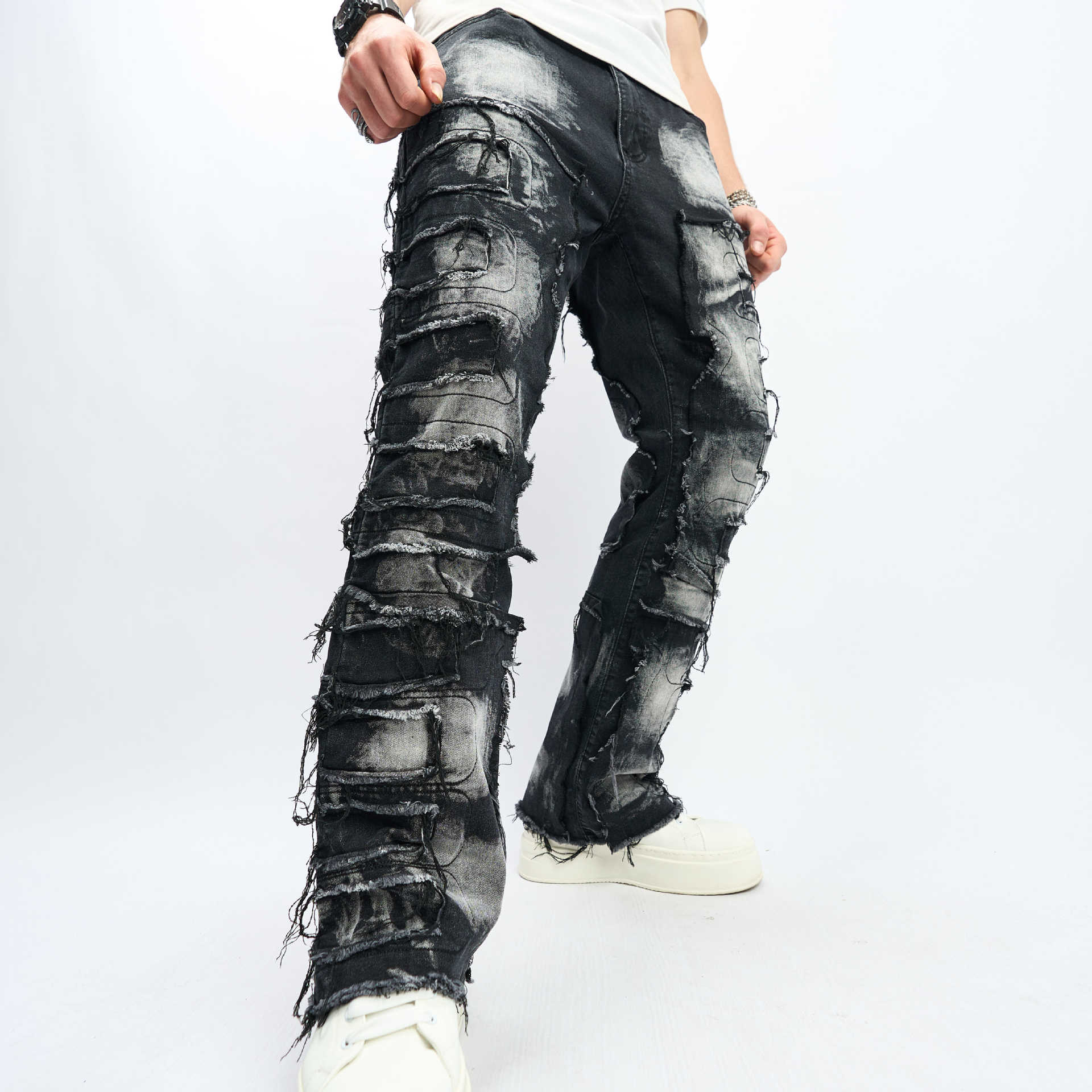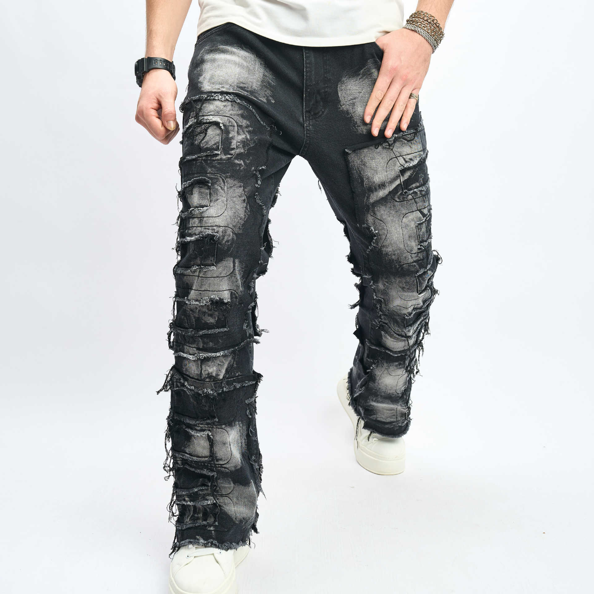 2024 국경 대외 무역 새로운 복고풍 고양이는 캐주얼 청바지 남성 패션 하이 스트리트 디자인 감각 스트레이트 팬츠해야합니다