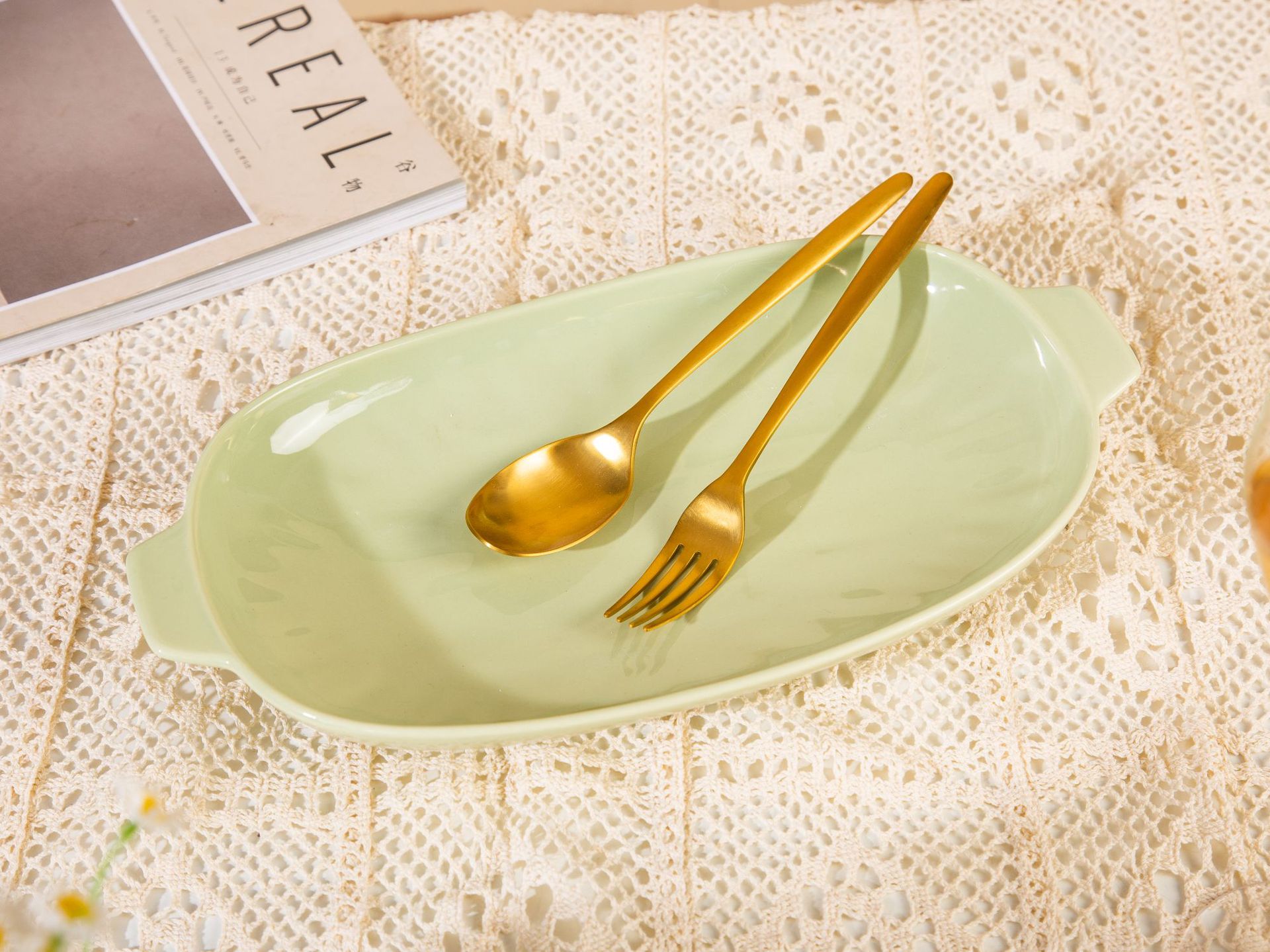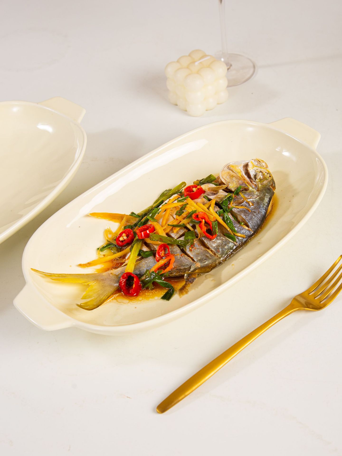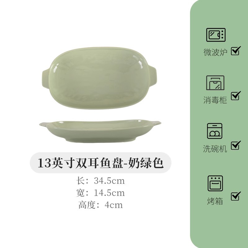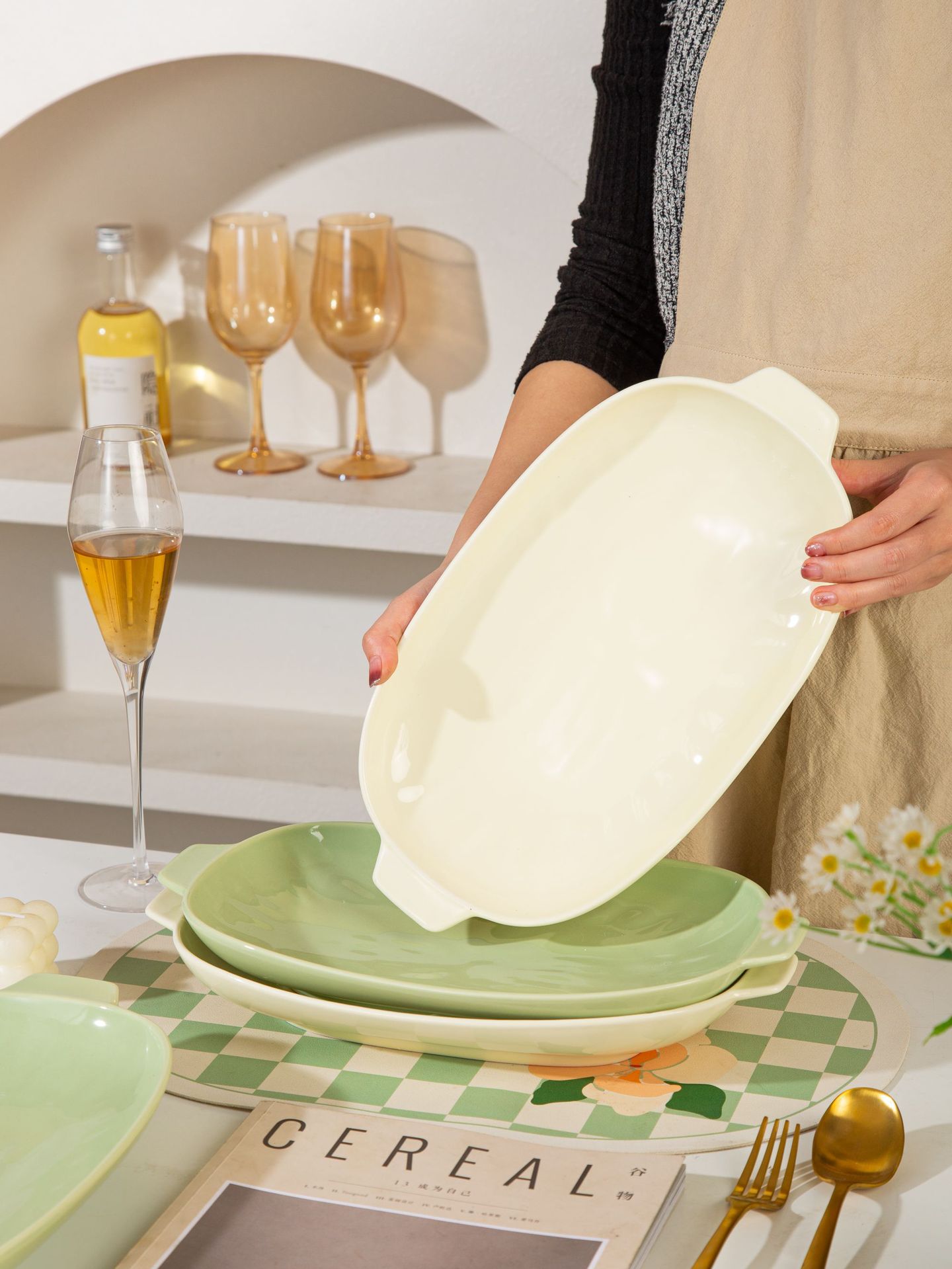 인터넷 트렌드 높은 뷰티 가치 크림 스타일 세라믹 플레이트 가정용 단일 찐 생선 플레이트 언더 유약 컬러 디너 플레이트 바이나럴 베이킹 플레이트 식기