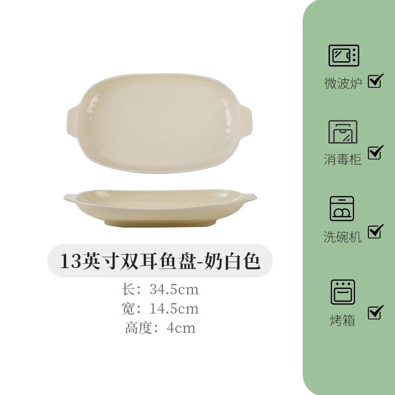 인터넷 트렌드 높은 뷰티 가치 크림 스타일 세라믹 플레이트 가정용 단일 찐 생선 플레이트 언더 유약 컬러 디너 플레이트 바이나럴 베이킹 플레이트 식기스토어 가기