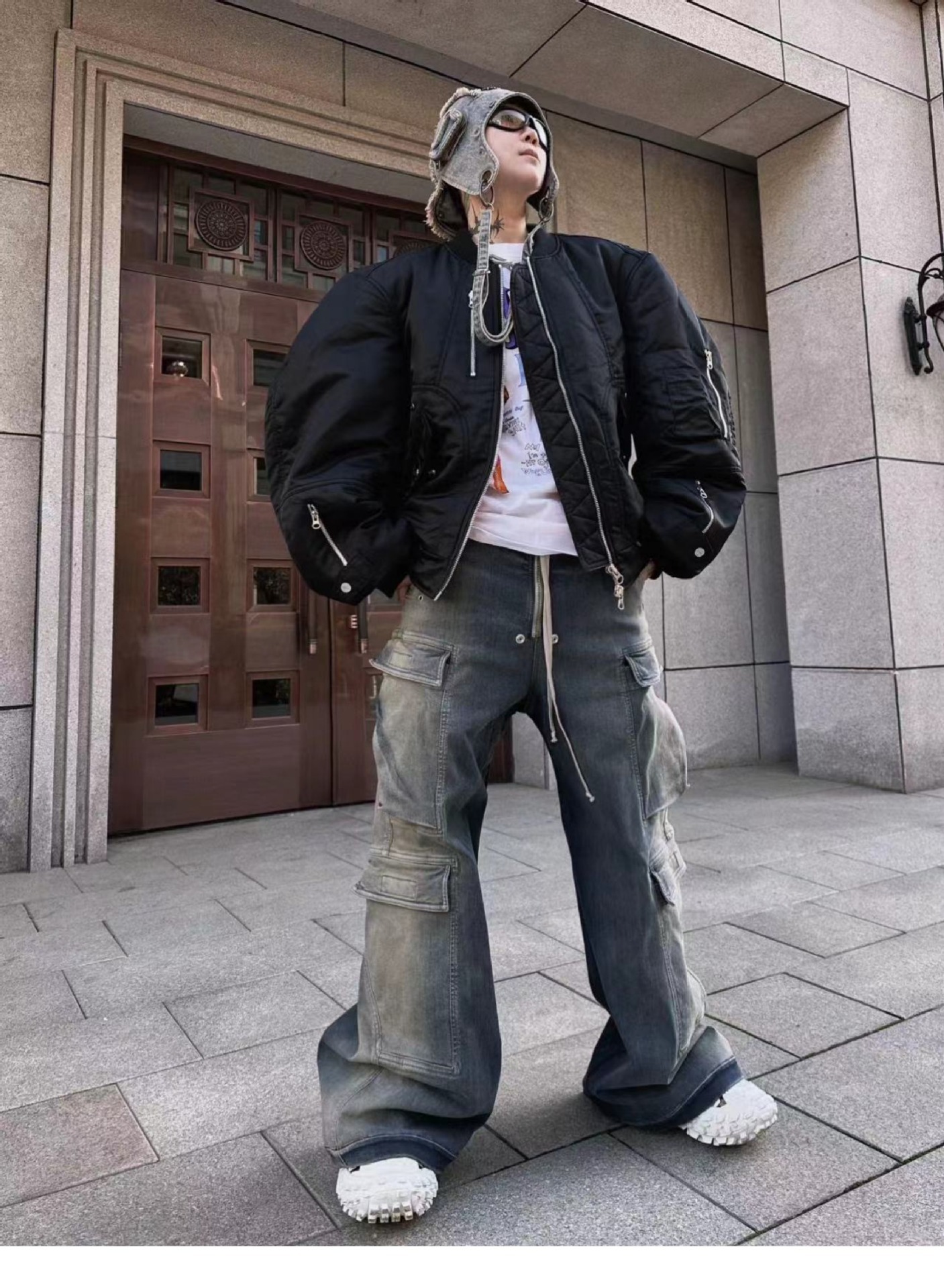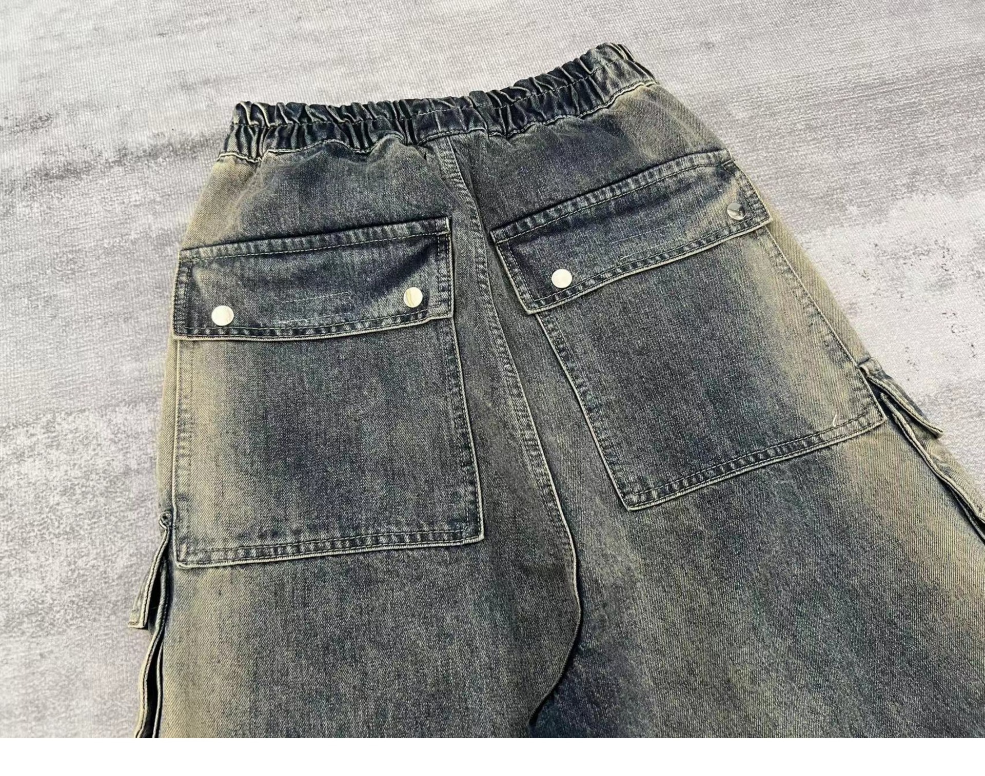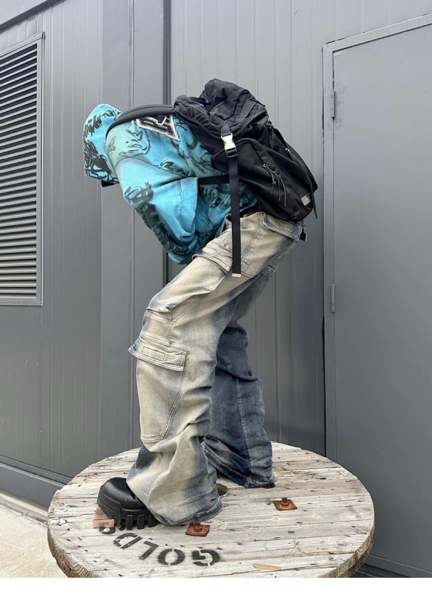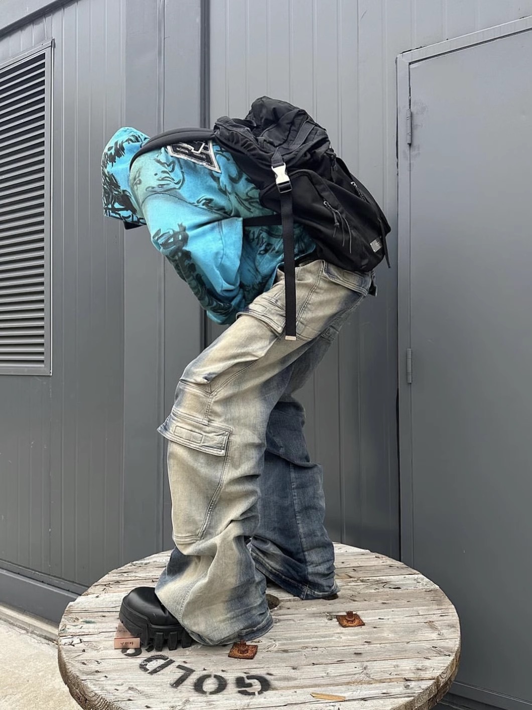 美式潮牌水洗蓝牛仔裤男春夏季新款宽松大阔腿裤渐变工装裤长裤子