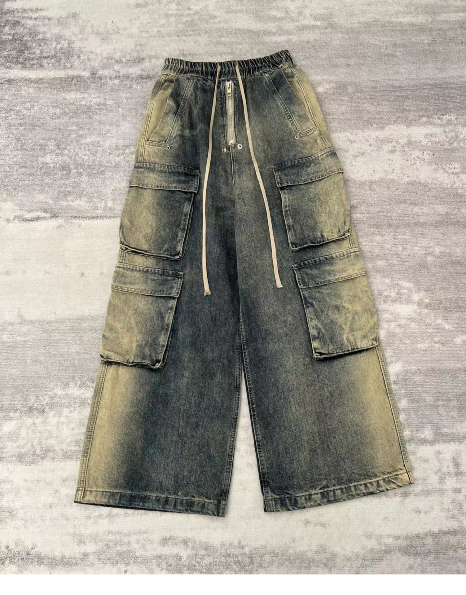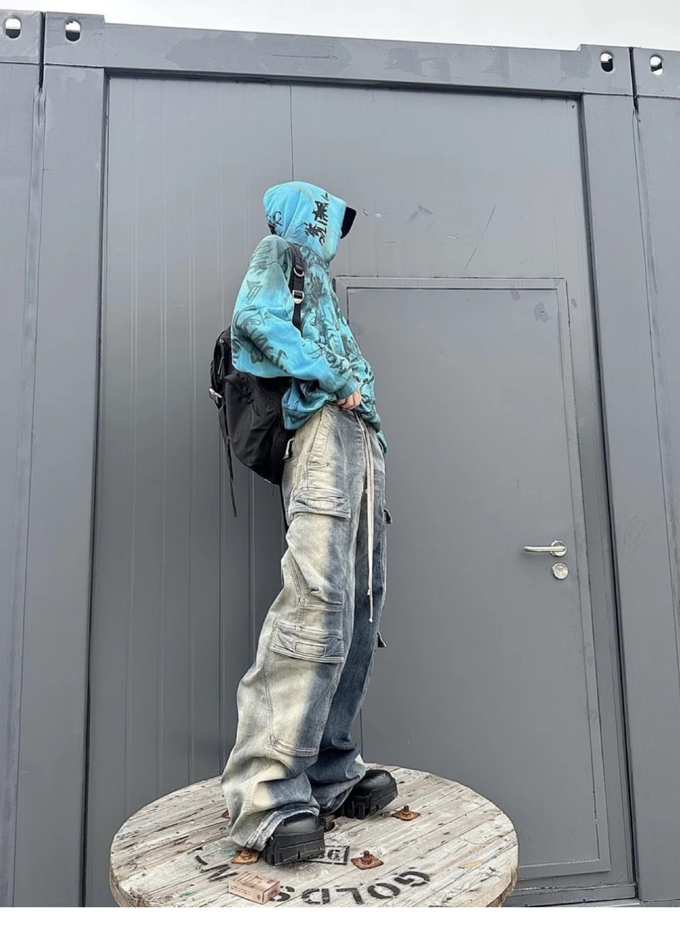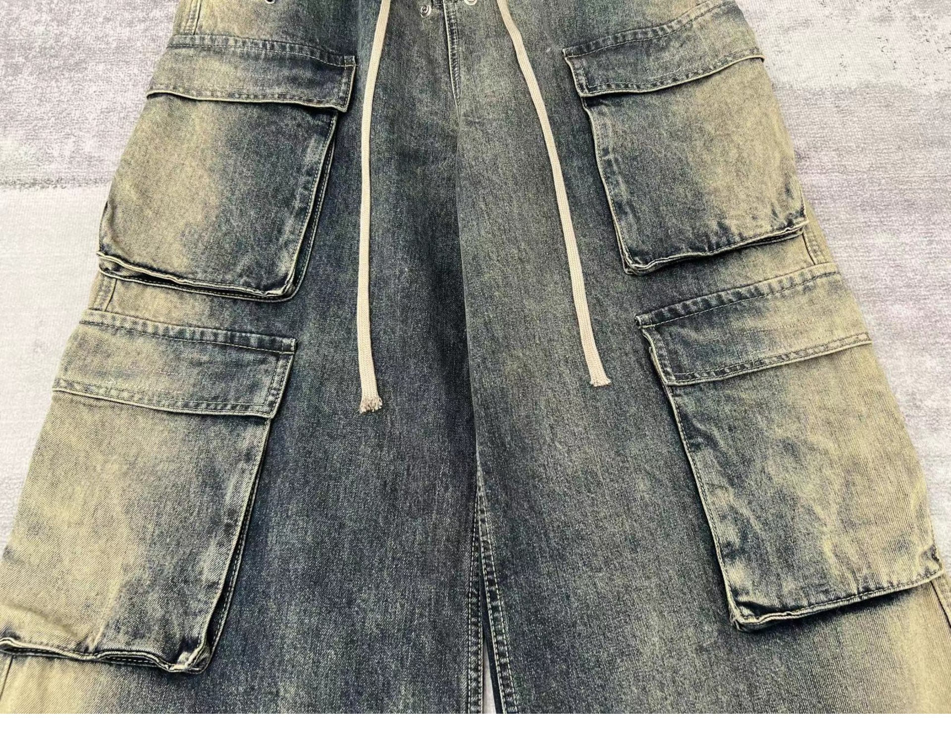 미국 스타일의 트렌디 브랜드 세탁 블루 청바지 남성 봄과 여름 새로운 느슨한 넓은 다리 바지 그라디언트 크레인 바지 긴 바지스토어 가기