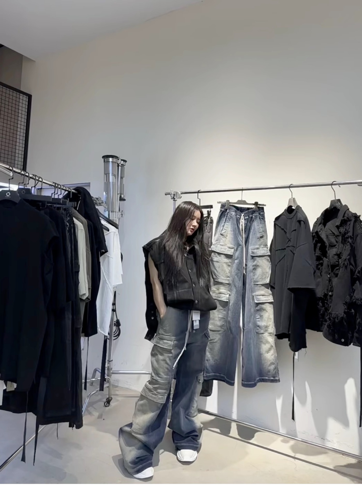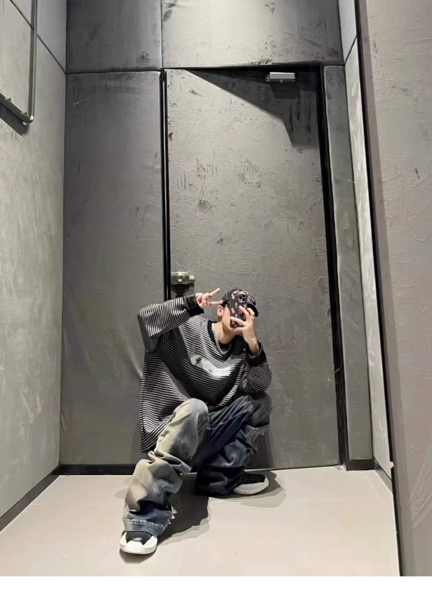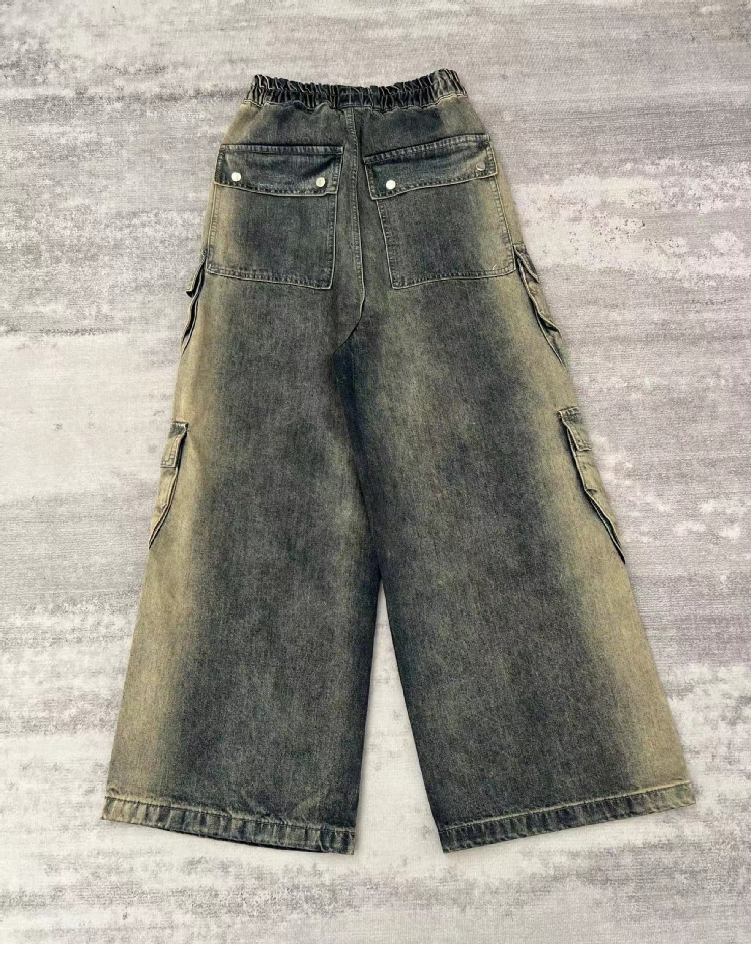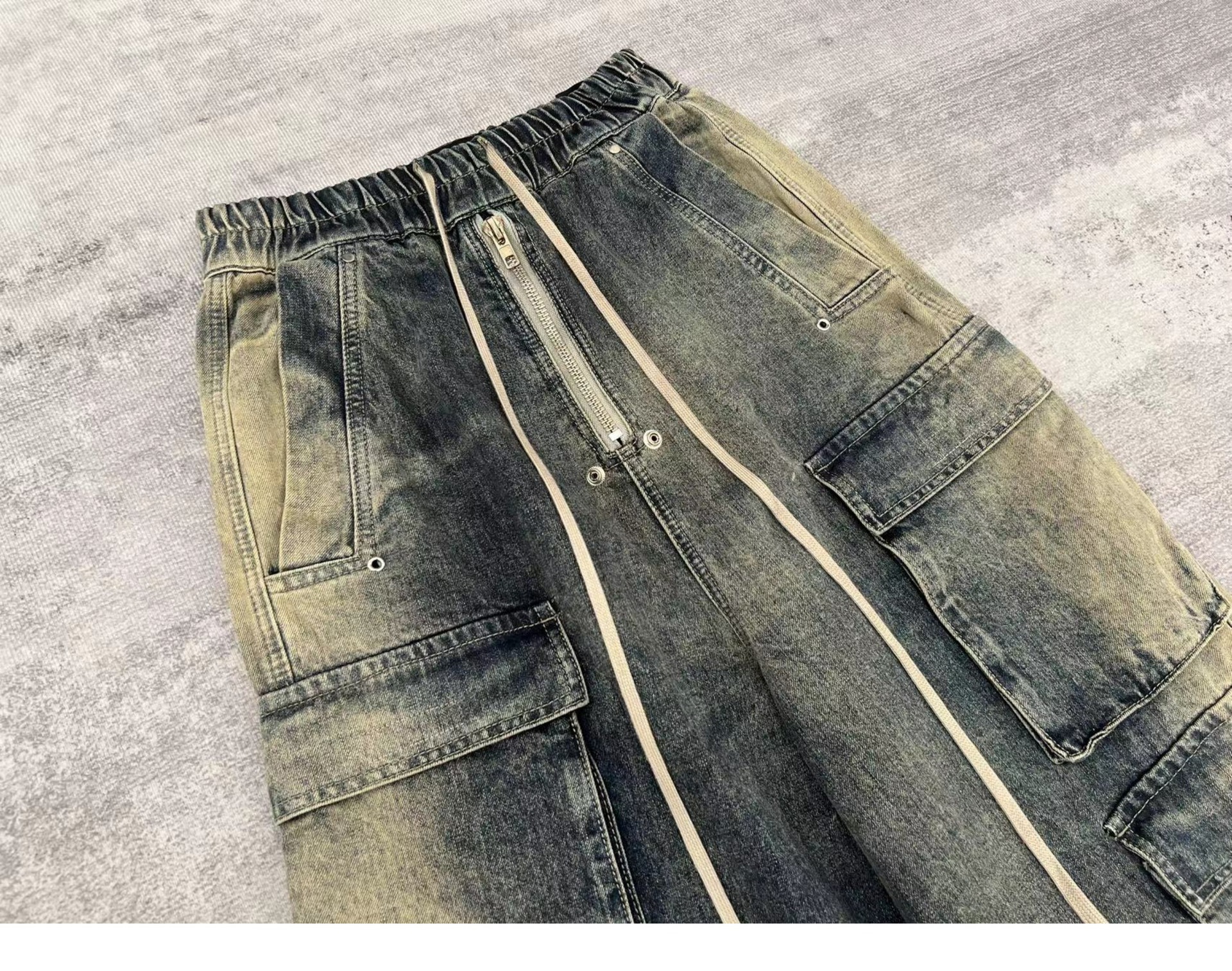 미국 스타일의 트렌디 브랜드 세탁 블루 청바지 남성 봄과 여름 새로운 느슨한 넓은 다리 바지 그라디언트 크레인 바지 긴 바지스토어 가기