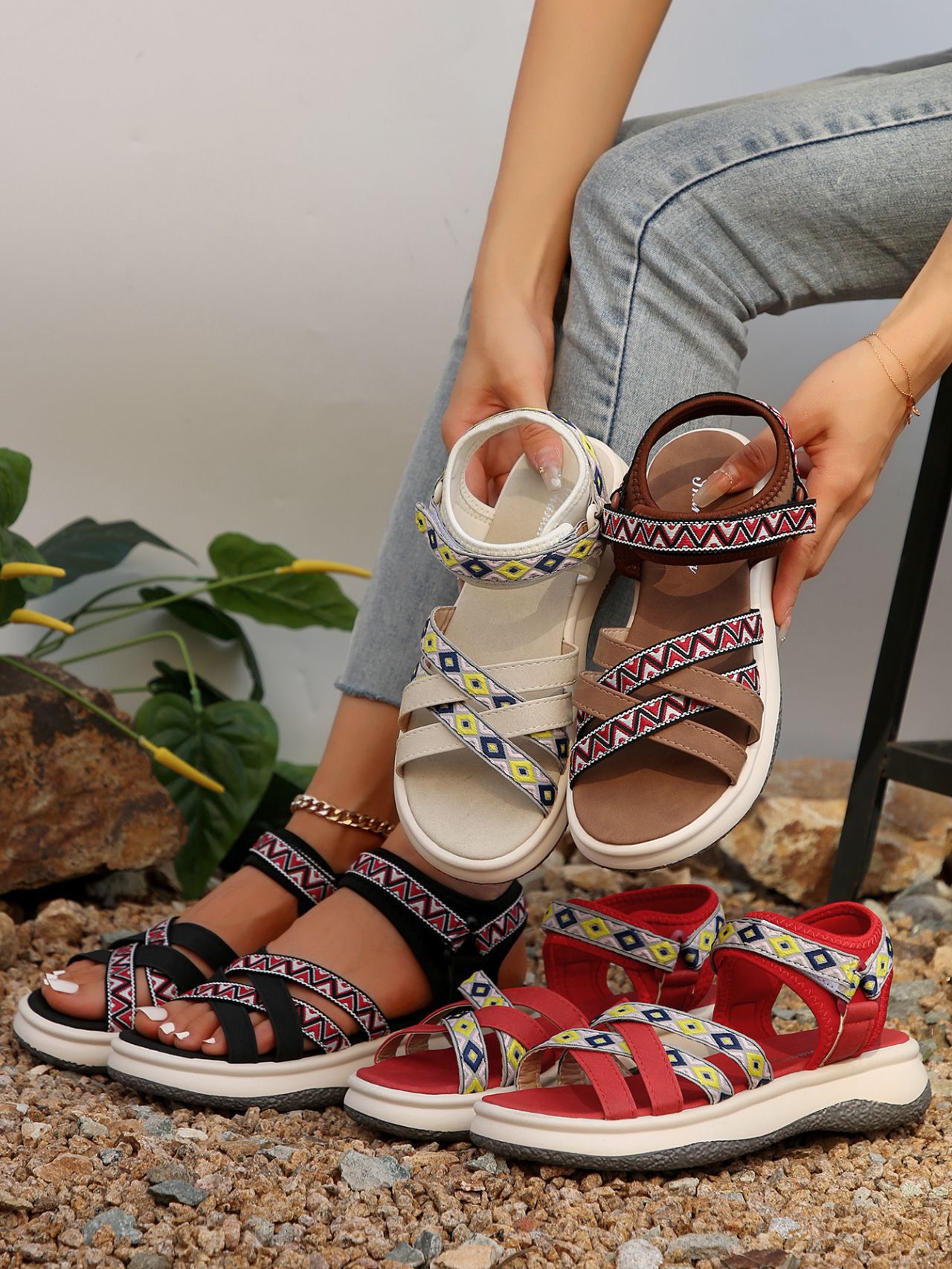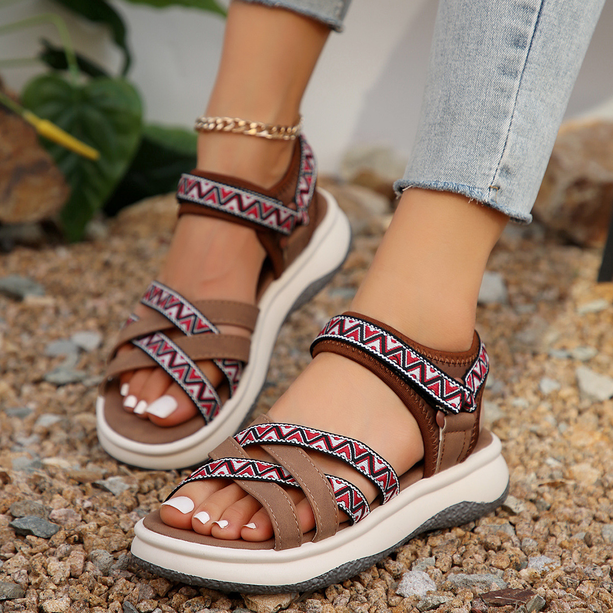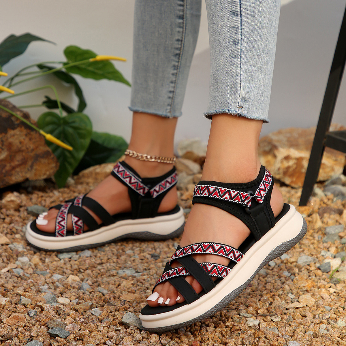 대외 무역 2024 여름 새로운 색상 매칭 패션 민족 스타일 경량 비치 슈즈 크로스 오픈 발가락 소프트 두꺼운 밑창 샌들스토어 가기