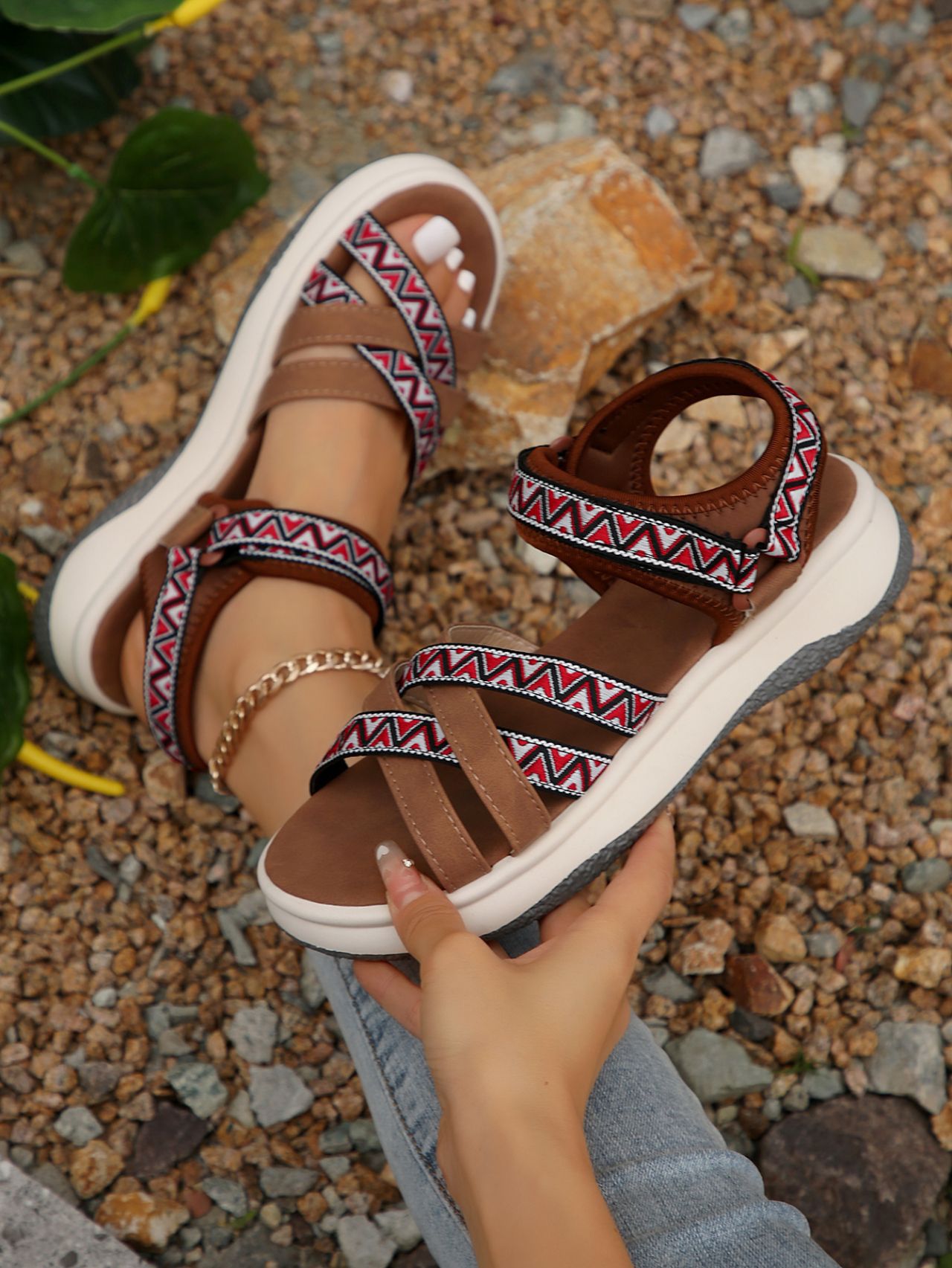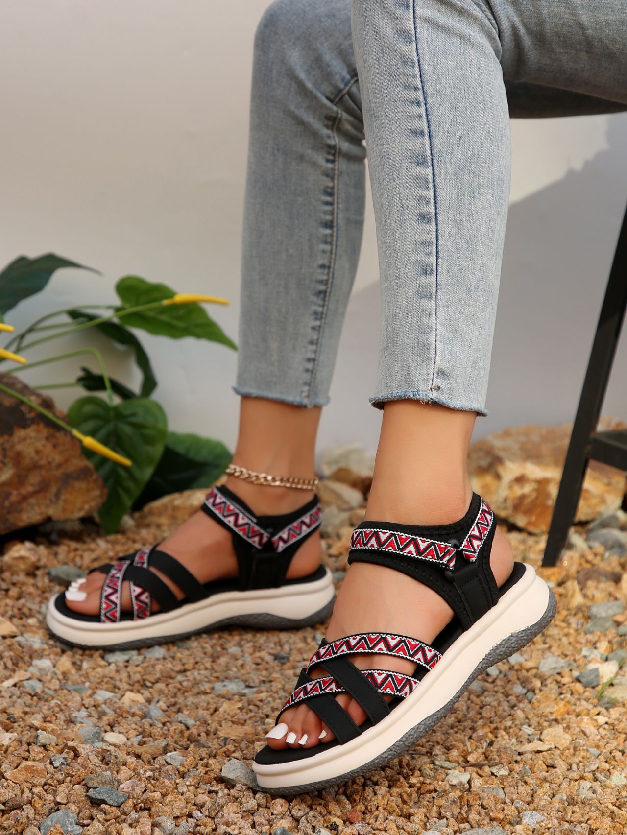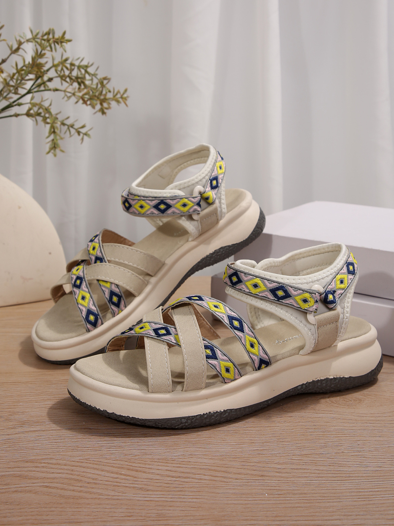 대외 무역 2024 여름 새로운 색상 매칭 패션 민족 스타일 경량 비치 슈즈 크로스 오픈 발가락 소프트 두꺼운 밑창 샌들스토어 가기